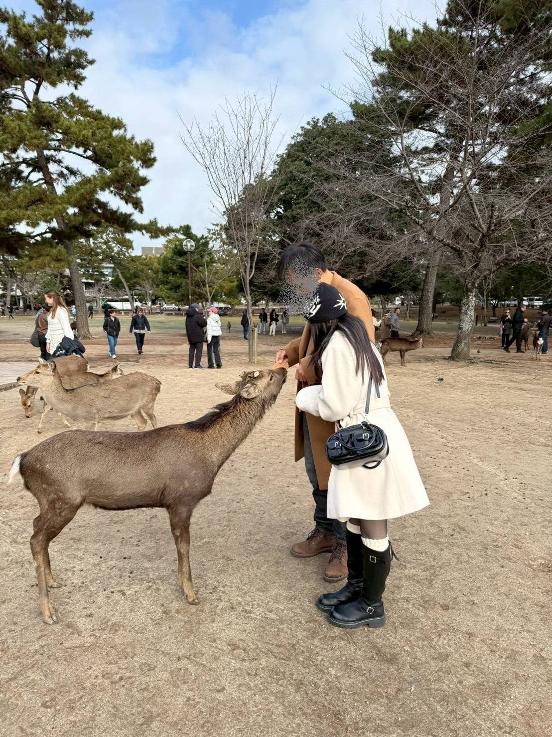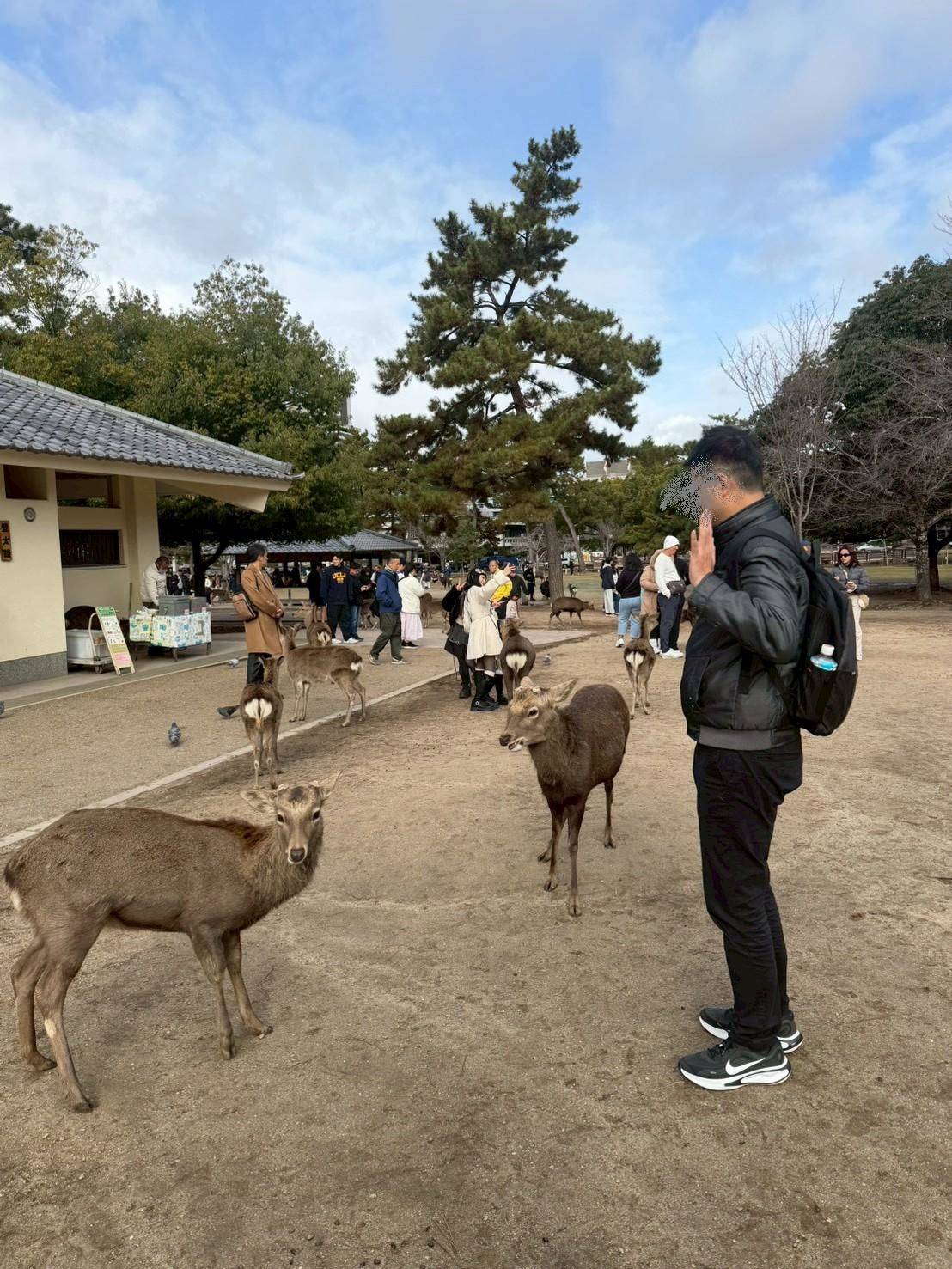 到了奈良開闊的公園風更大超冷 不過能和鹿鞠躬也是很有趣的畫面