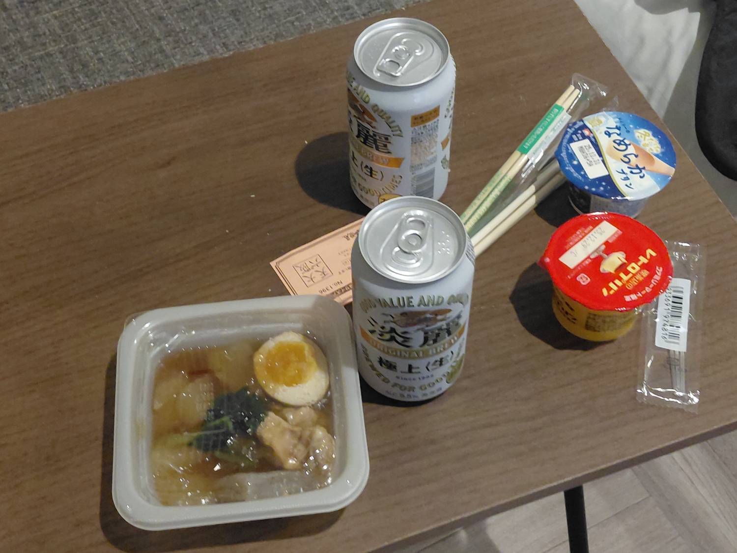 走了一大段路 好不容易找到全家 弄個下酒菜+冰塊杯+氣泡酒啤酒 兩個登機箱疊起來