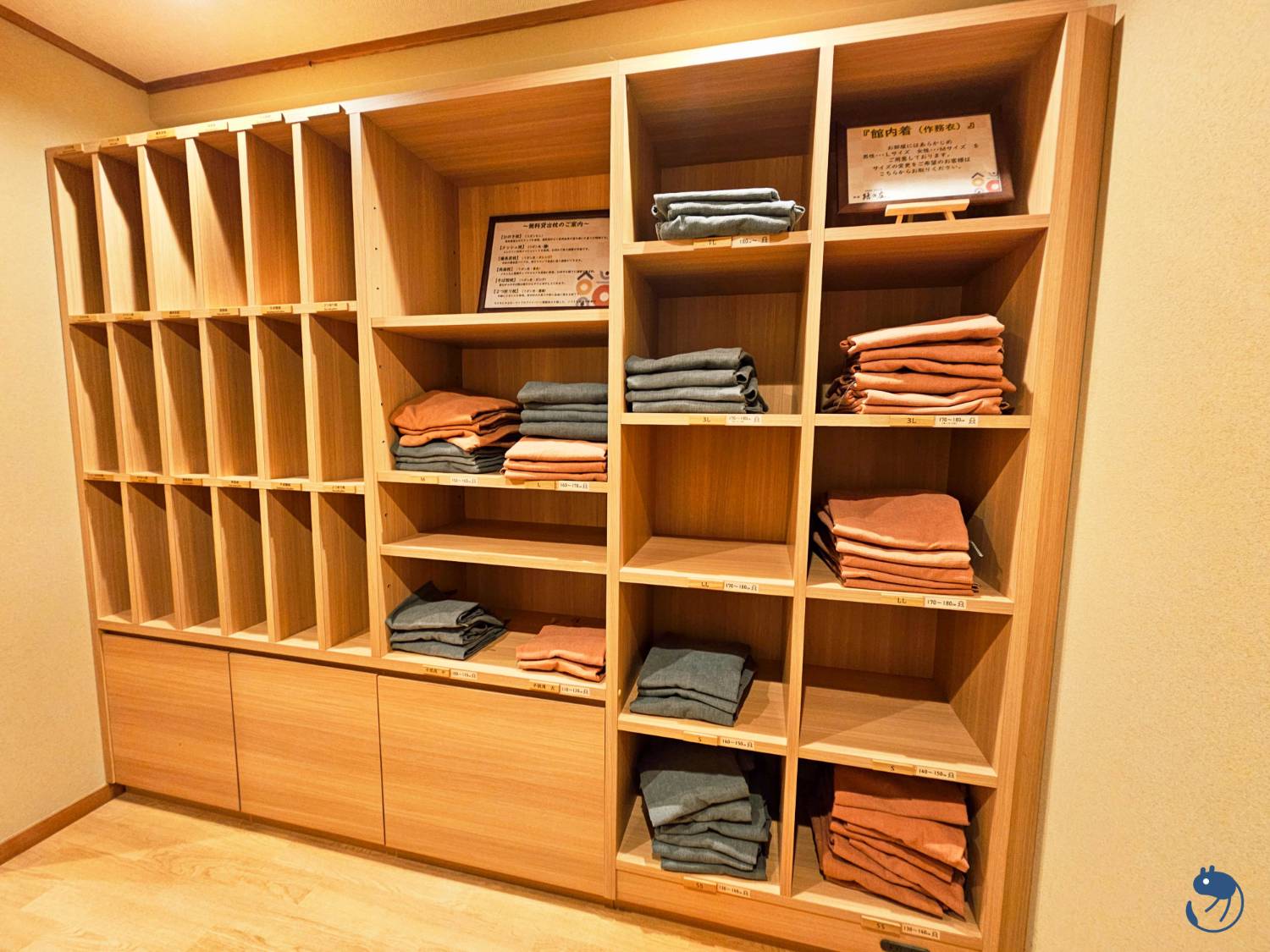 旅館內穿的作務衣還有不同種類的枕頭都可以在住宿區的一跟三樓直接拿取。