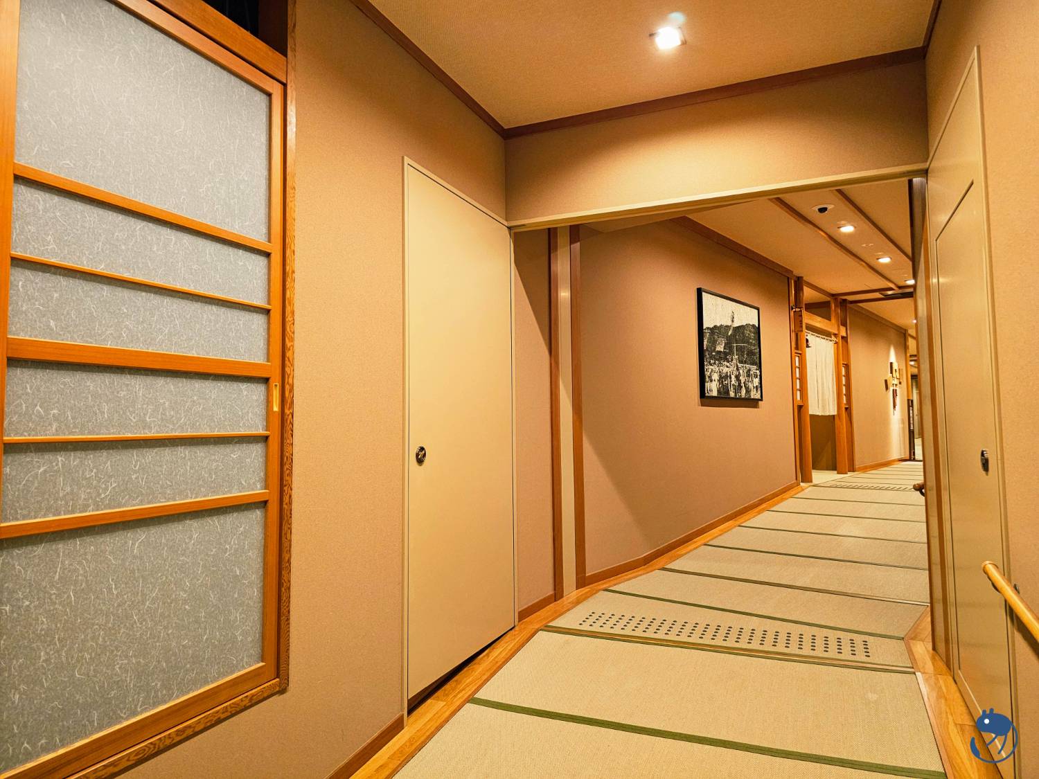 跟一般日式溫泉旅館一樣,旅館內鋪滿榻榻米,所以必須將鞋子放在鞋櫃內,在旅館內只