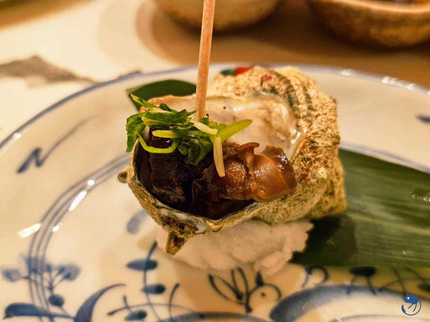 我選了肉厚肥美,結合了內臟苦味與海水鹹味的壺燒榮螺。