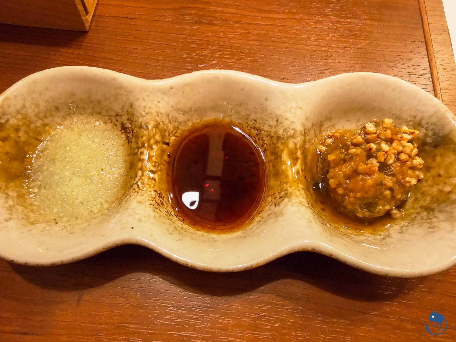 沾醬: 山葵醋、柚子醋與蕎麥味噌