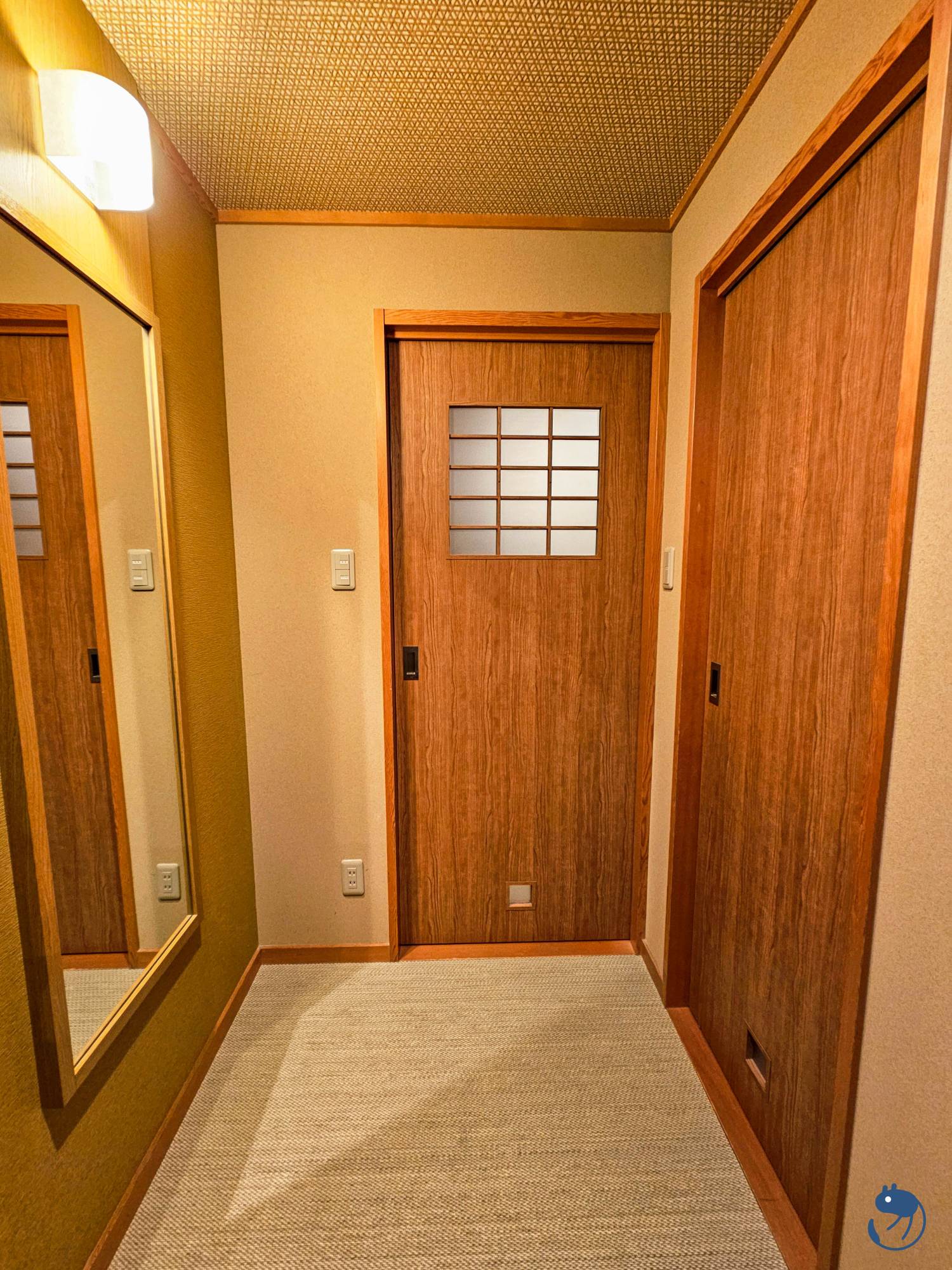 打開房門第一眼就是玄關。右側是浴室與洗手間,前方是房間。