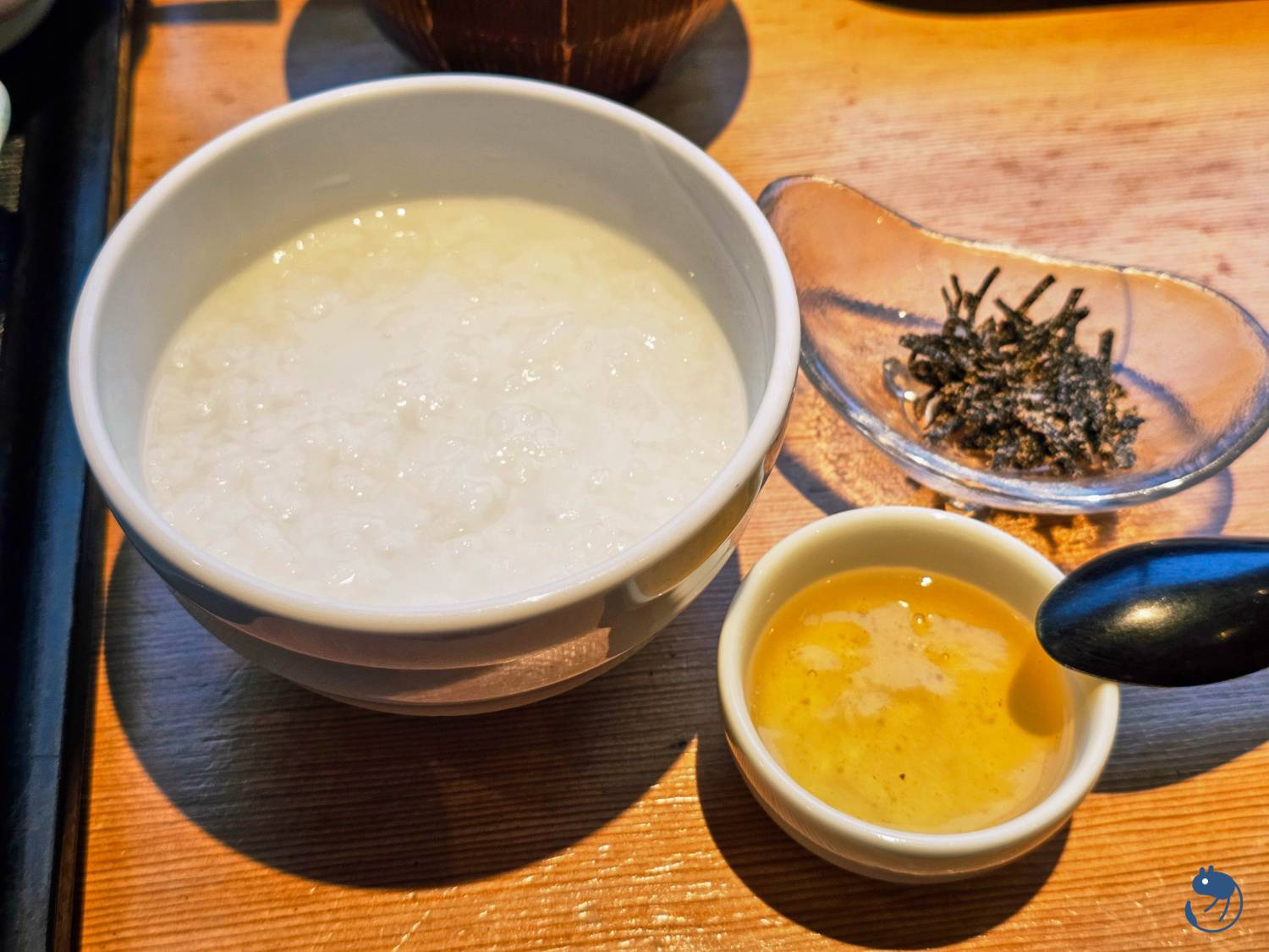既然有粥可以吃,當然也叫一碗來試試~還另外附上海苔與玉子燒高湯可以一起配著吃!