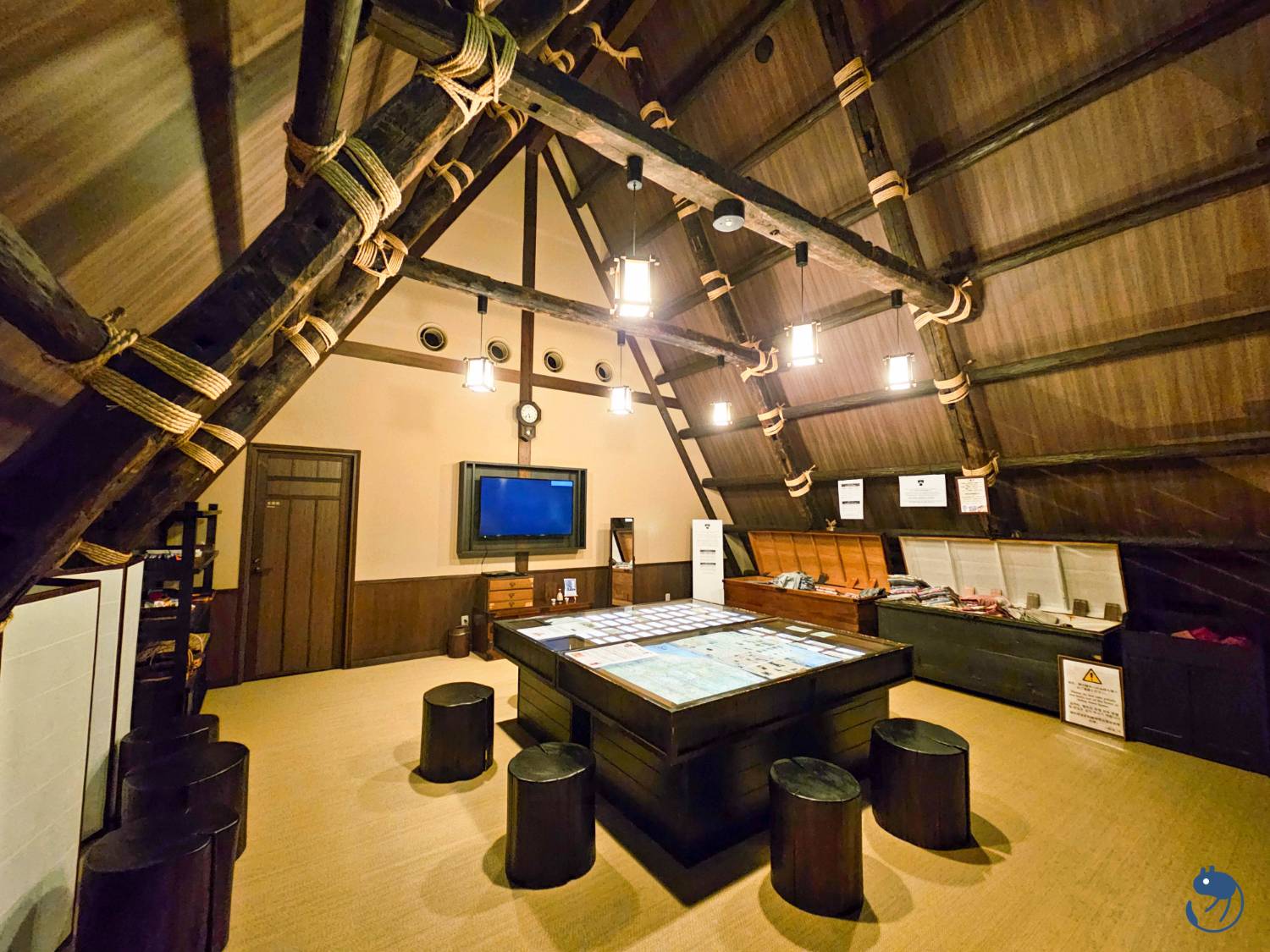 二樓除了是交誼廳,還有認識白川鄉的影片與資料,更能看到合掌造的小屋組部結構。
