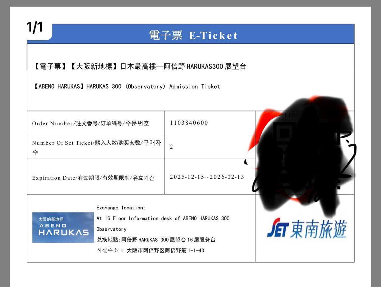 [讓售] 大阪|HARUKAS300阿倍野展望台|門票