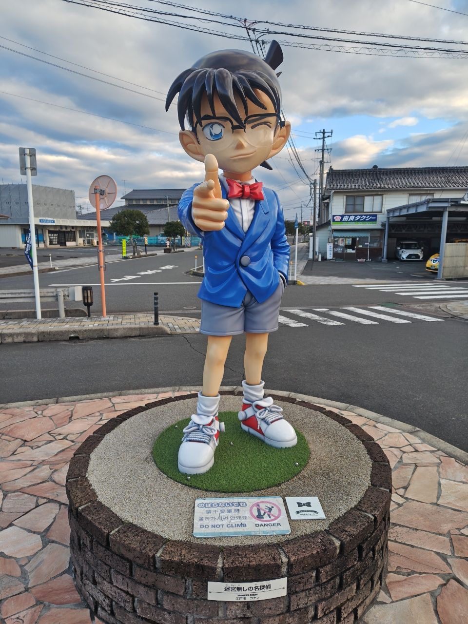 到青山剛昌故鄉館了,外面有阿笠博士的黃車