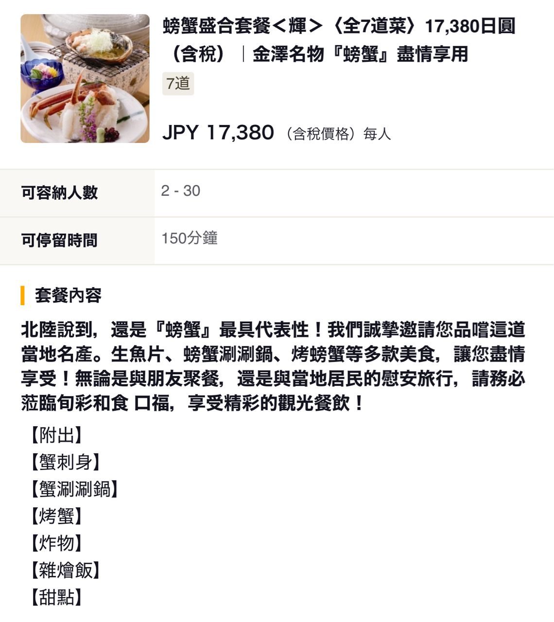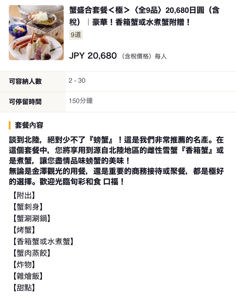 [徵人] 2/22金澤 徵飯友吃螃蟹套餐