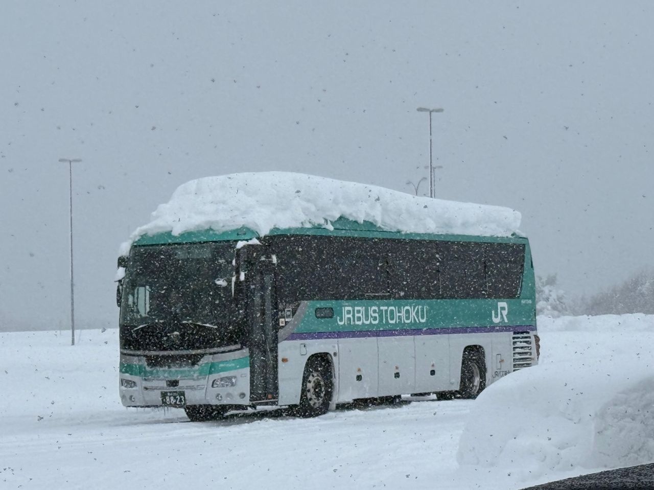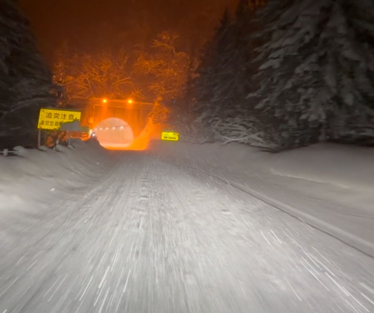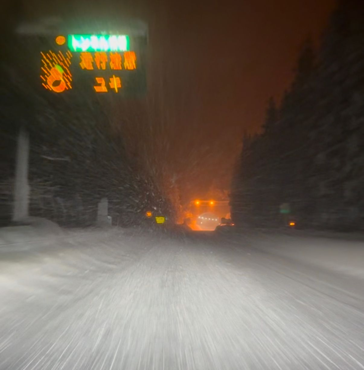 當天上午大雪,東北自動車道中間段從安代封到松尾八幡平,所有車全部趕到在一般道路
