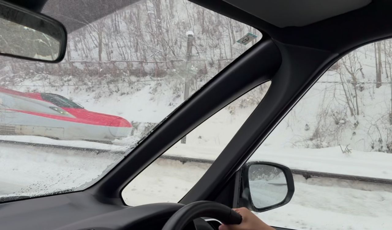 往盛岡的路上遇到新幹線