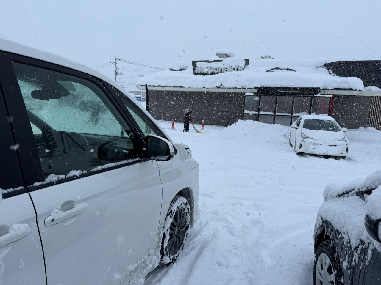 第一次塞在暴雪天,也感受到日本人在大雪天大塞車的開車習慣,基本上沒看到硬切車,