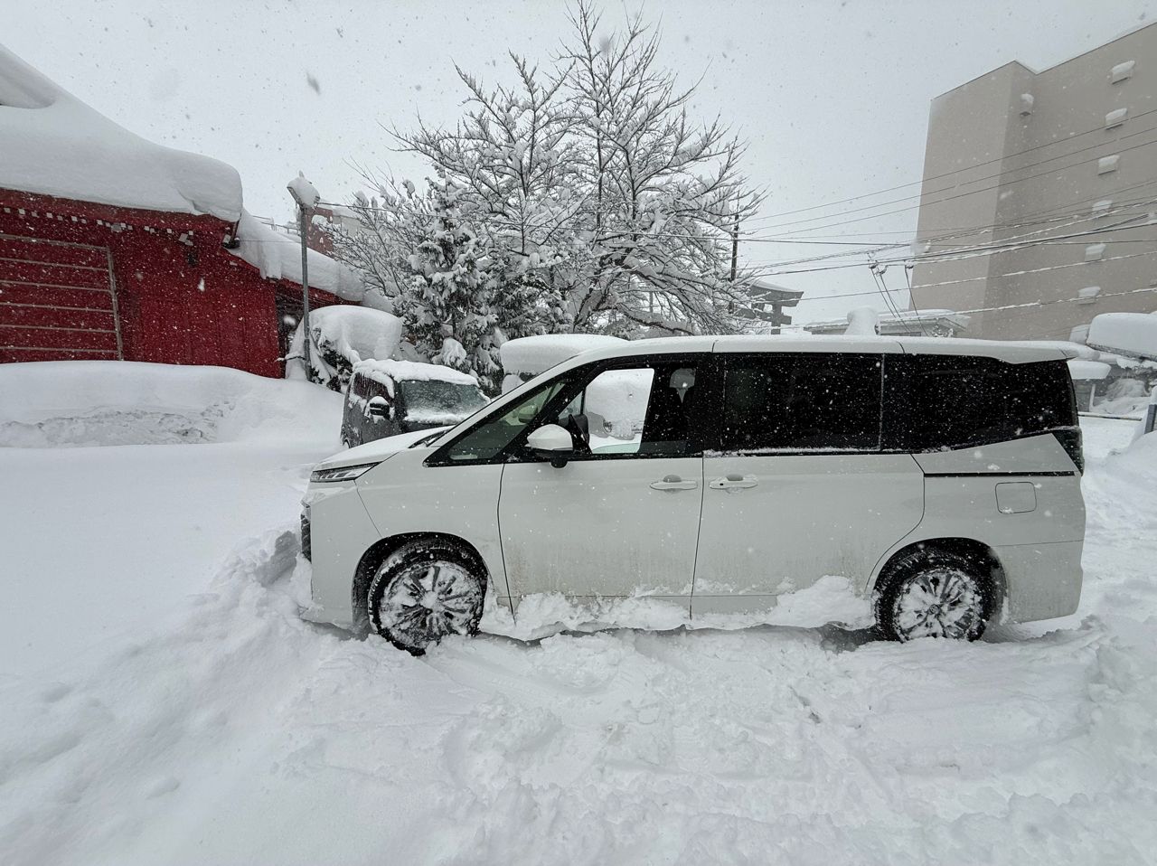 海邊回到青森市,回到青森市區,一堆小路都已經積雪封路,路上一堆卡住的車。