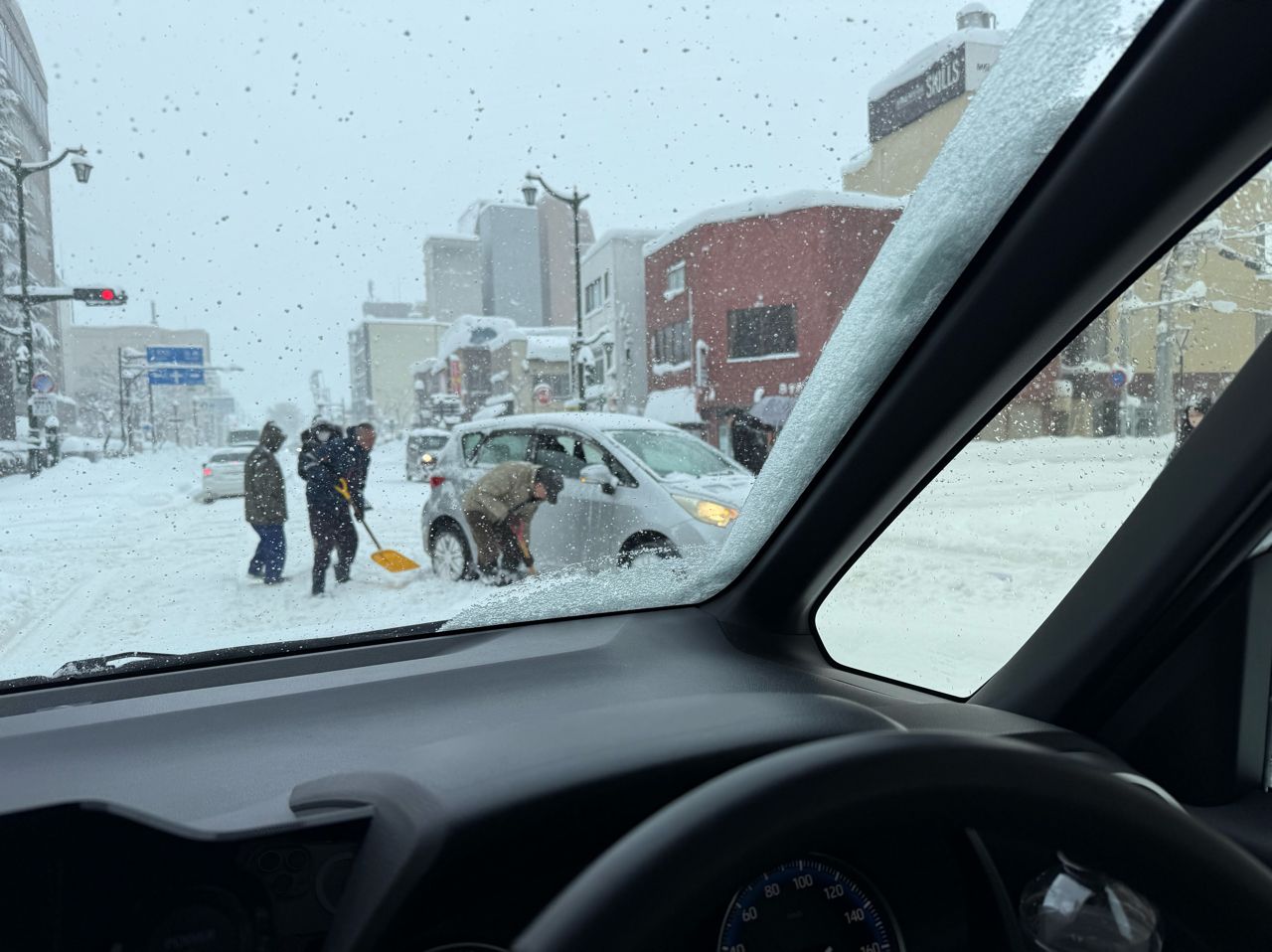 這天青森市區大塞車,6公里的路程在幹道塞車開2小時,基本上大雪天大家都寧願在幹道