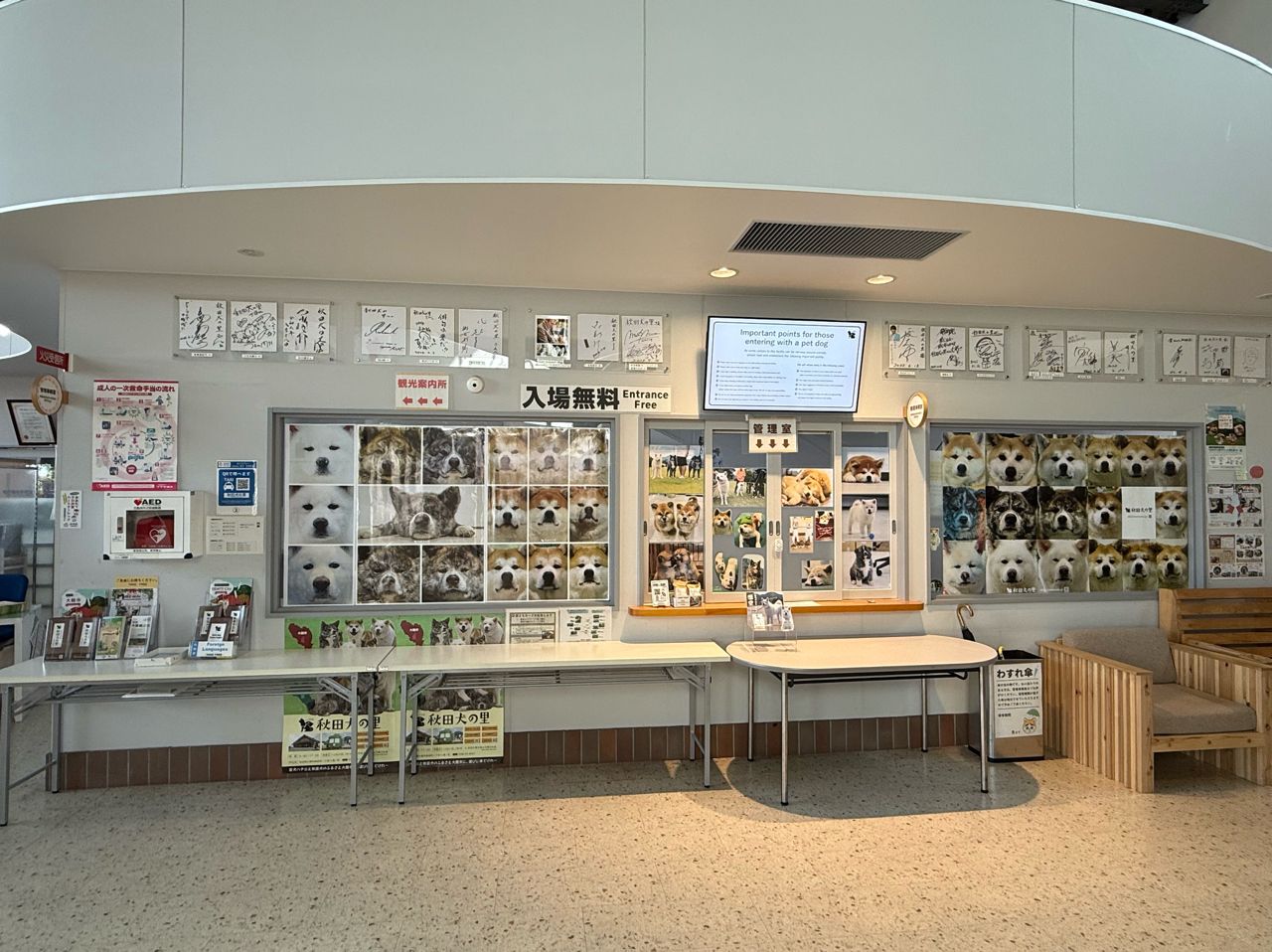 靜態展覽是秋田犬的歷史與故事,有販賣部與餐廳,基本上30分鐘可逛完,若大館等車需