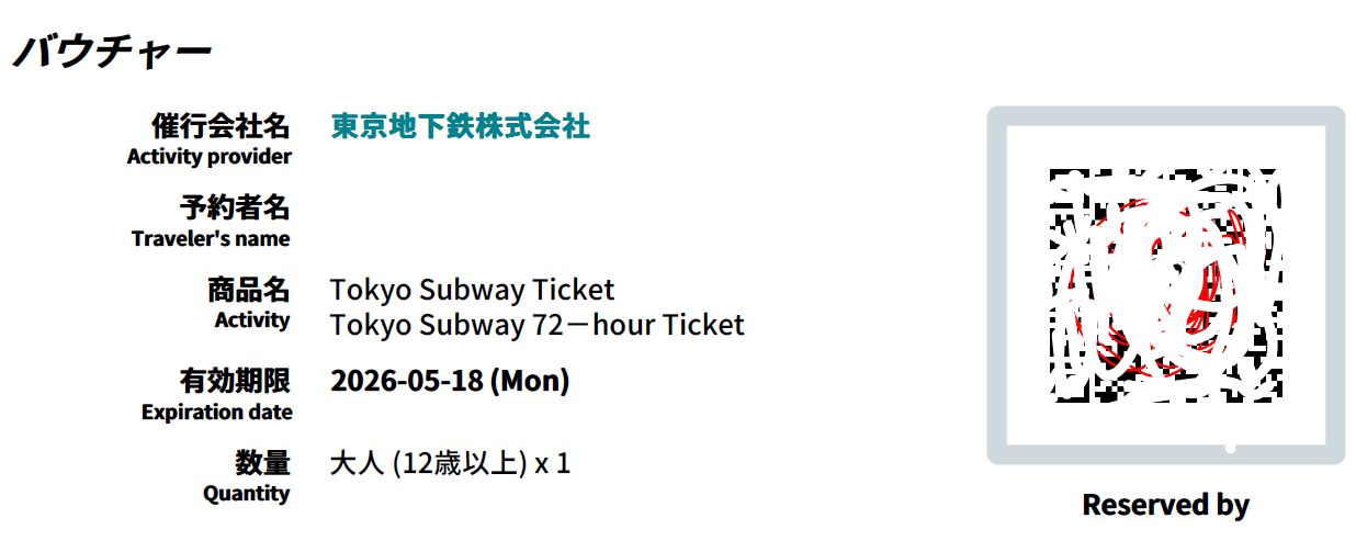 東京72小時地鐵券2026.5.18