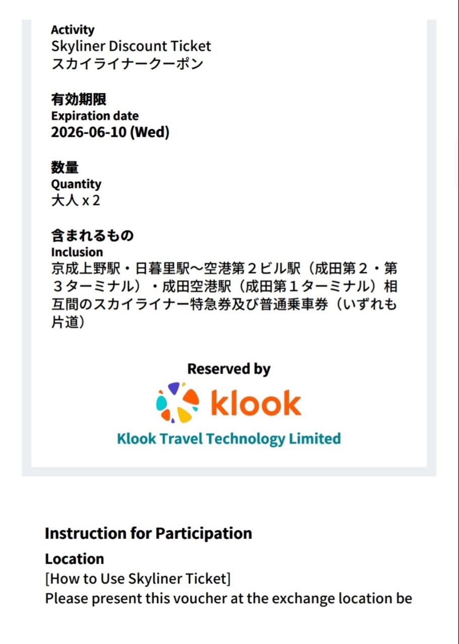 [讓售] 東京skyliner成人單程휲已刪文
