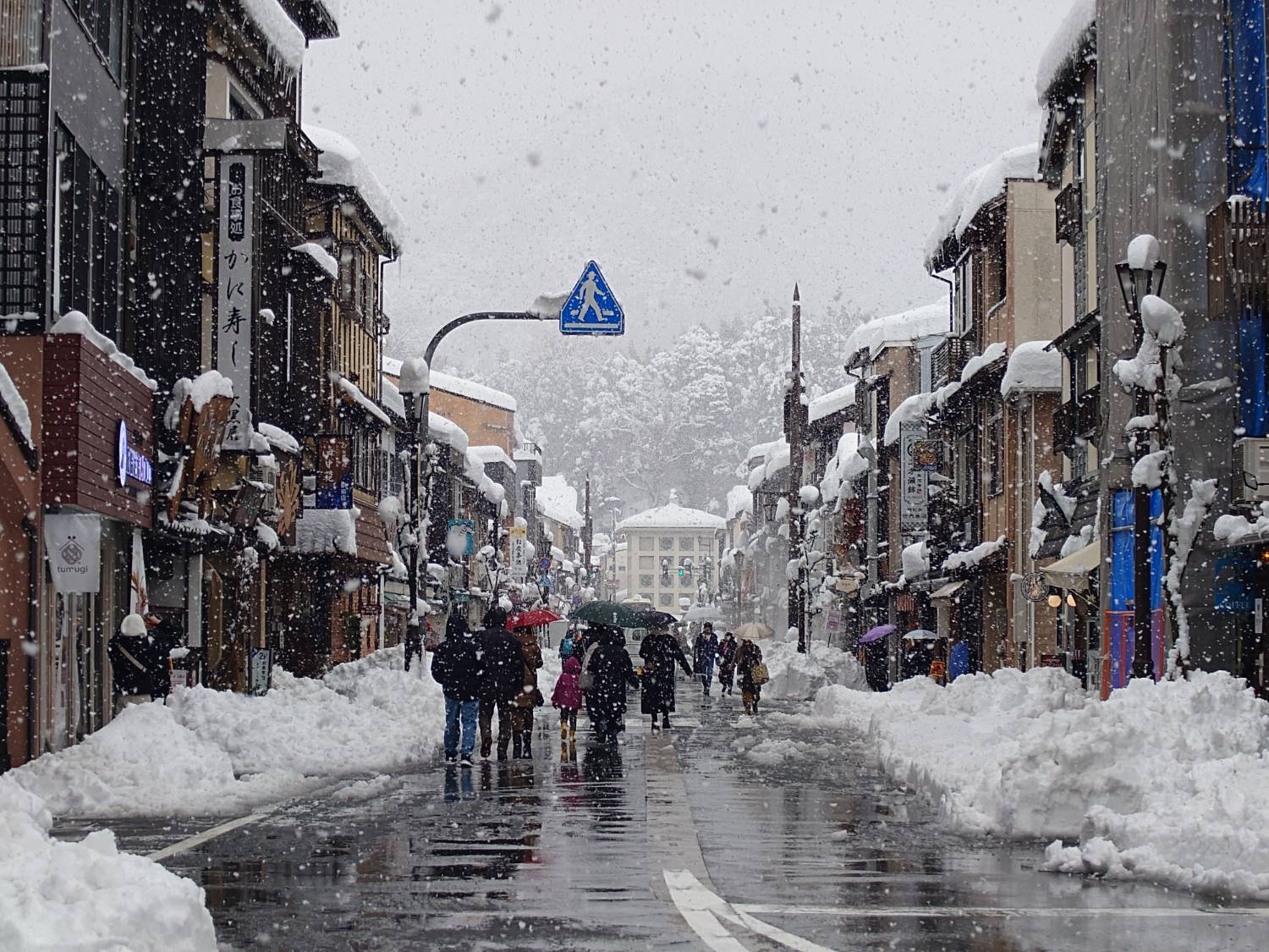 抵達城崎温泉後 外面真的是整片白 能成功抵達真的運氣不錯