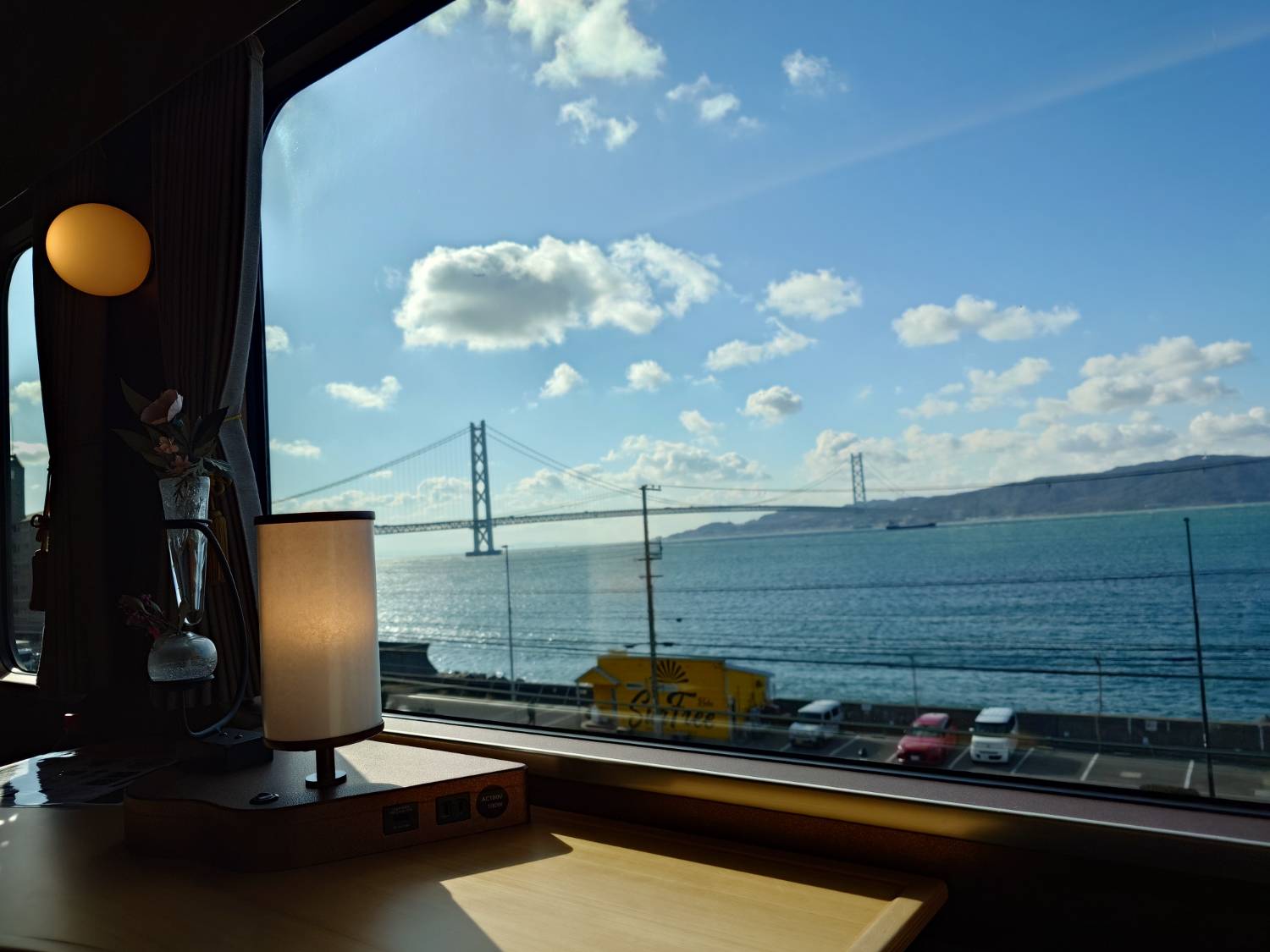 經過神戶線時還能看到海 跟明石海峽大橋