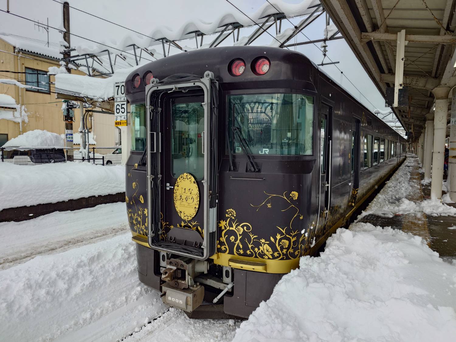 此時日本海側還是一直在噴雪 結果坐到一半就聽到車內廣播