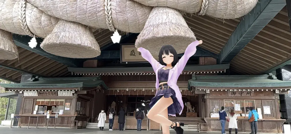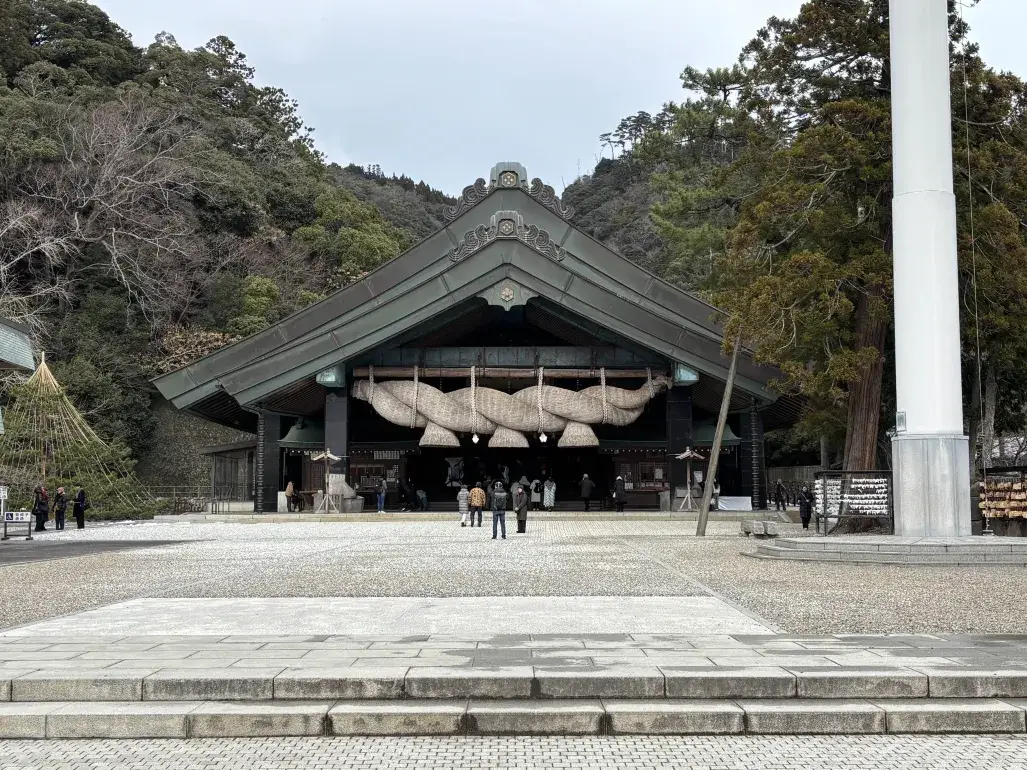 神楽殿的大注連縄,看到其他遊客都在拍借位扛大注連縄的照片,跟風拍了幾張