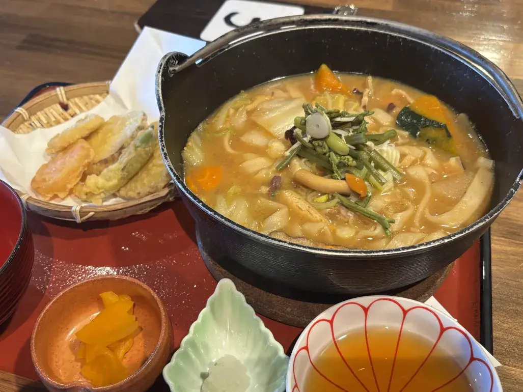 甲州ほうとう 完熟屋點的雞肉餺飥天婦羅套餐,蔬菜的脆度煮得剛剛好,份量也算多