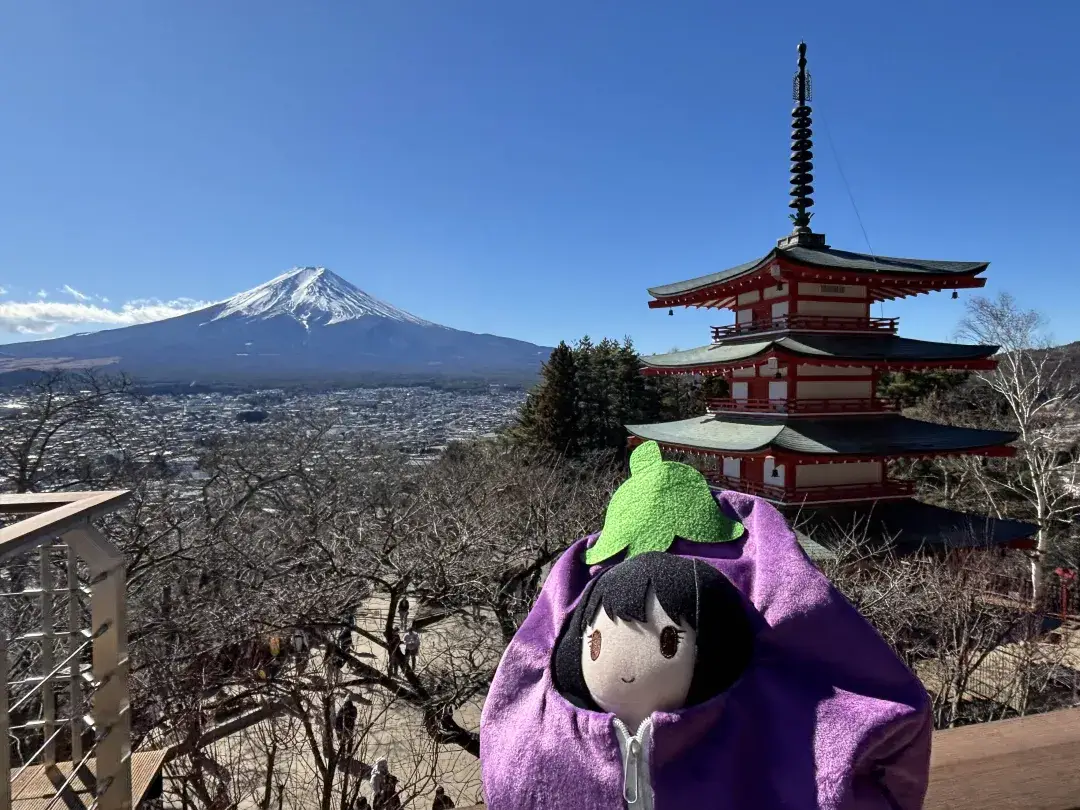 搭乘公車前往新倉富士淺間神社,當天雖然是0度不過在好天氣的幫助下體感沒那麼冷