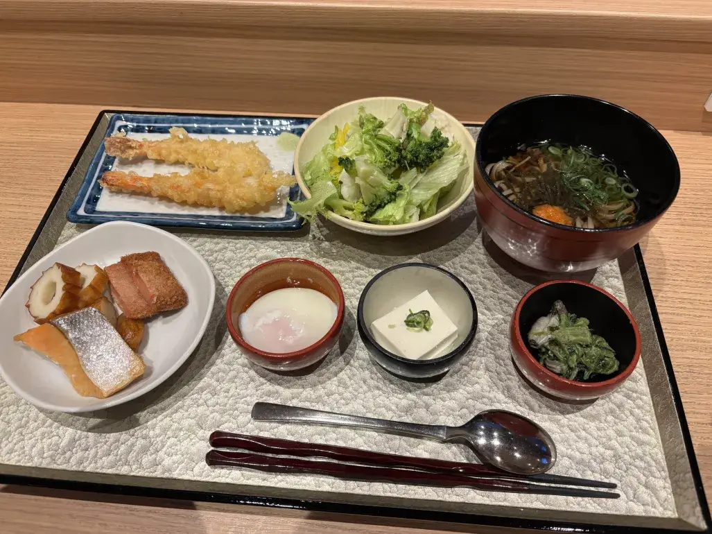 御宿 野乃松江的早餐也有出雲そば,可以跟廚師說要加熱湯
