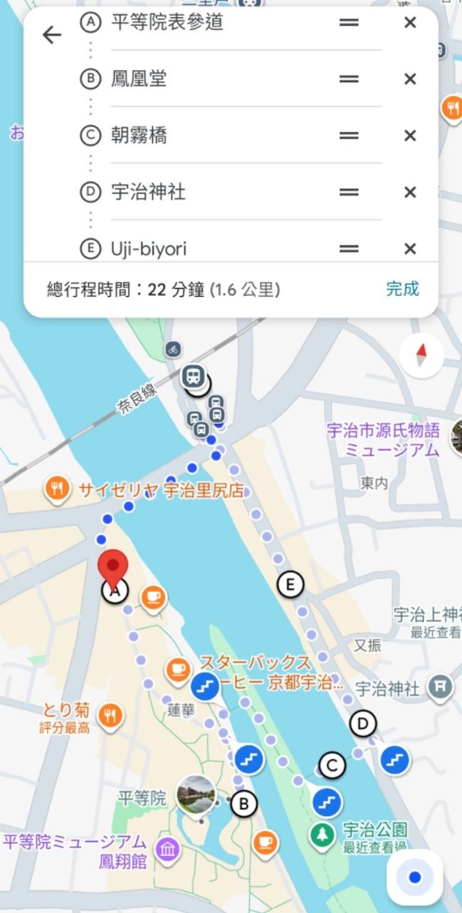 然後接著跑宇治一些熱門景點逛一下(,沿著宇治川繞一圈(平等院鳳凰堂/表參道/朝霧橋