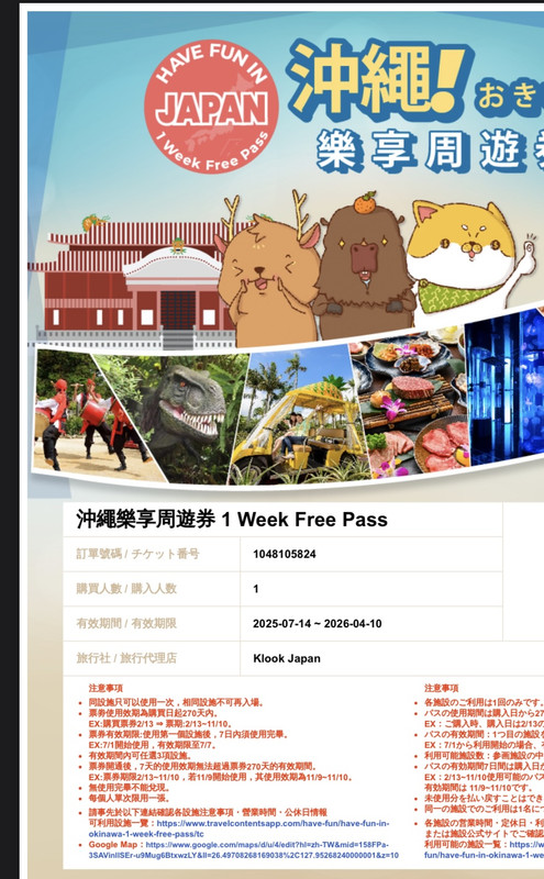 票券有效期限到2026/4/10,因行程改變所以沒有使用到
