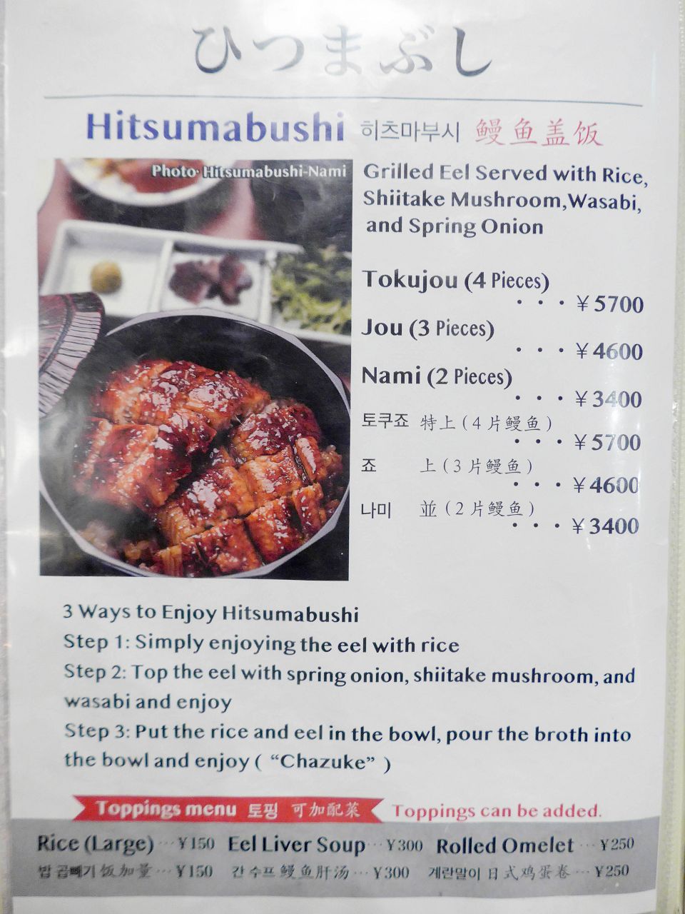 這家供應的餐點主要有鰻魚飯、鰻魚三吃、鰻魚定食,