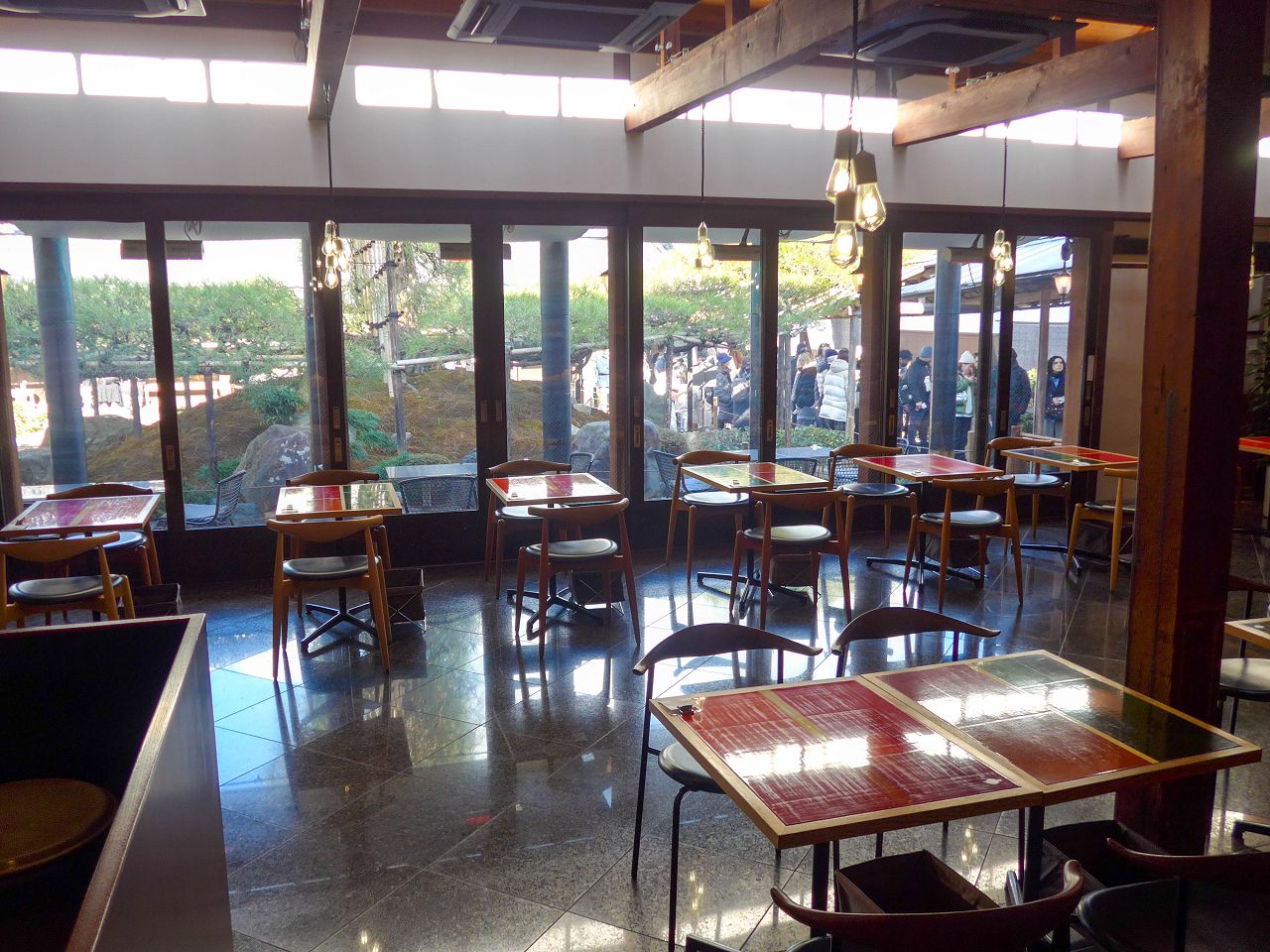 靠窗座位區可以觀賞美麗的庭園景致,