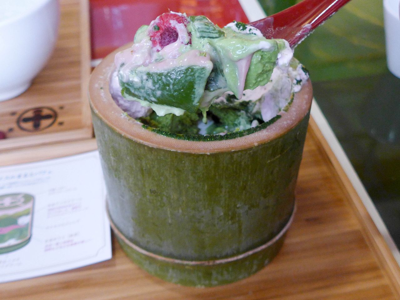 克力鮮奶油、抹茶生茶凍、蛋白霜餅、抹茶與牛奶綜合霜淇淋,