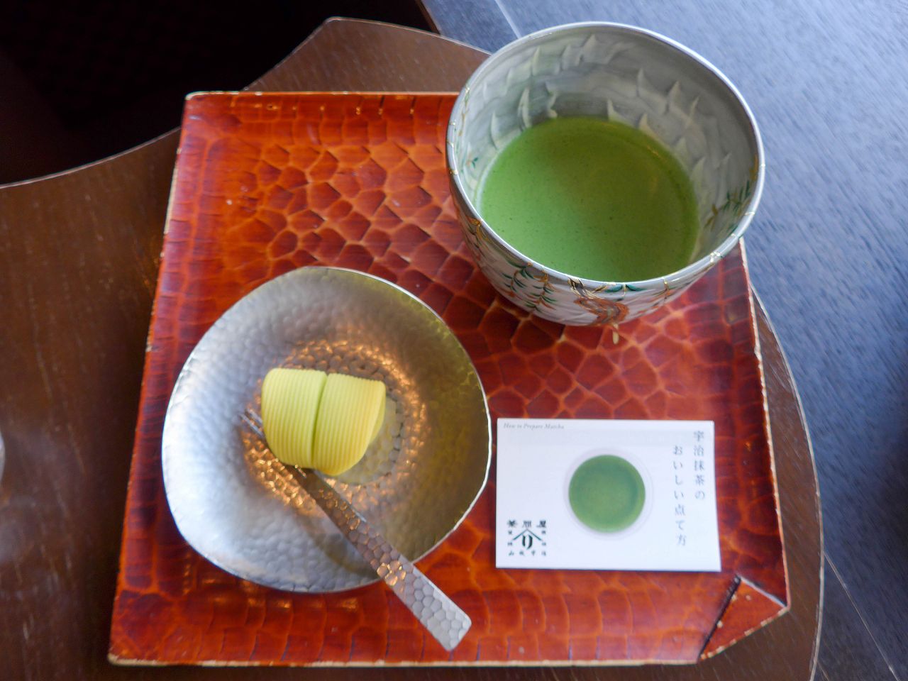 我點了一份濃茶帕菲和一碗手刷薄茶