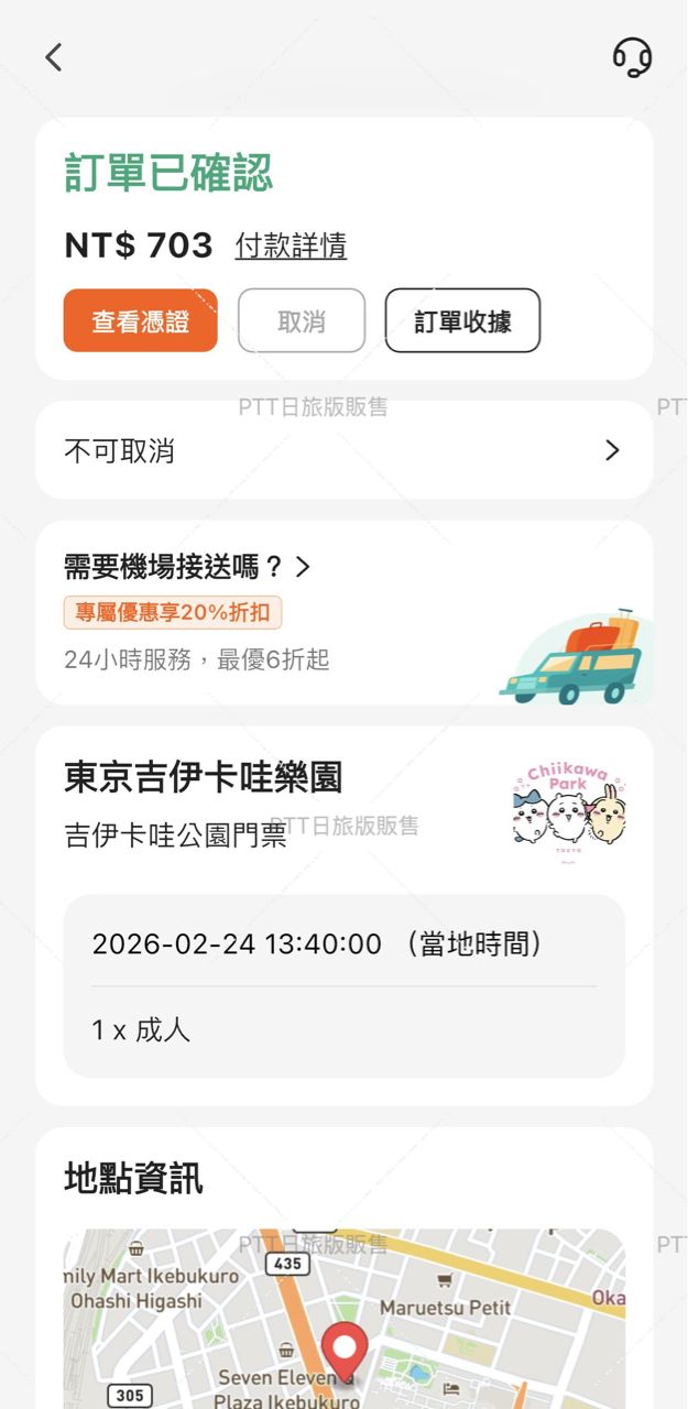 [讓售] Chiikawa Park 2/24 13:40 1張