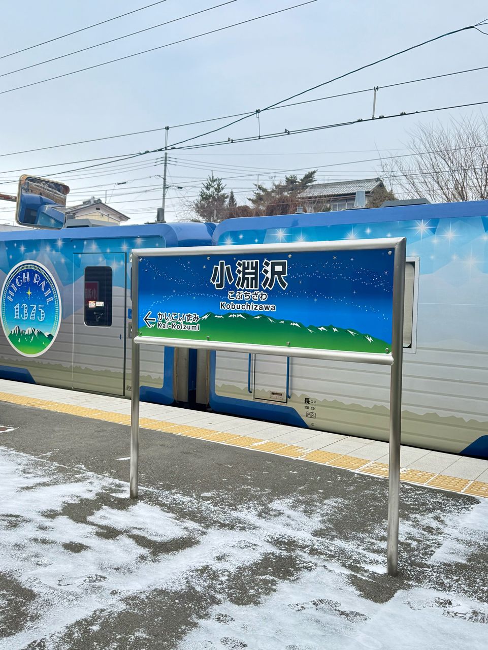 但搭他的前一班車,因此很幸運地在小淵澤月台跟他碰面了