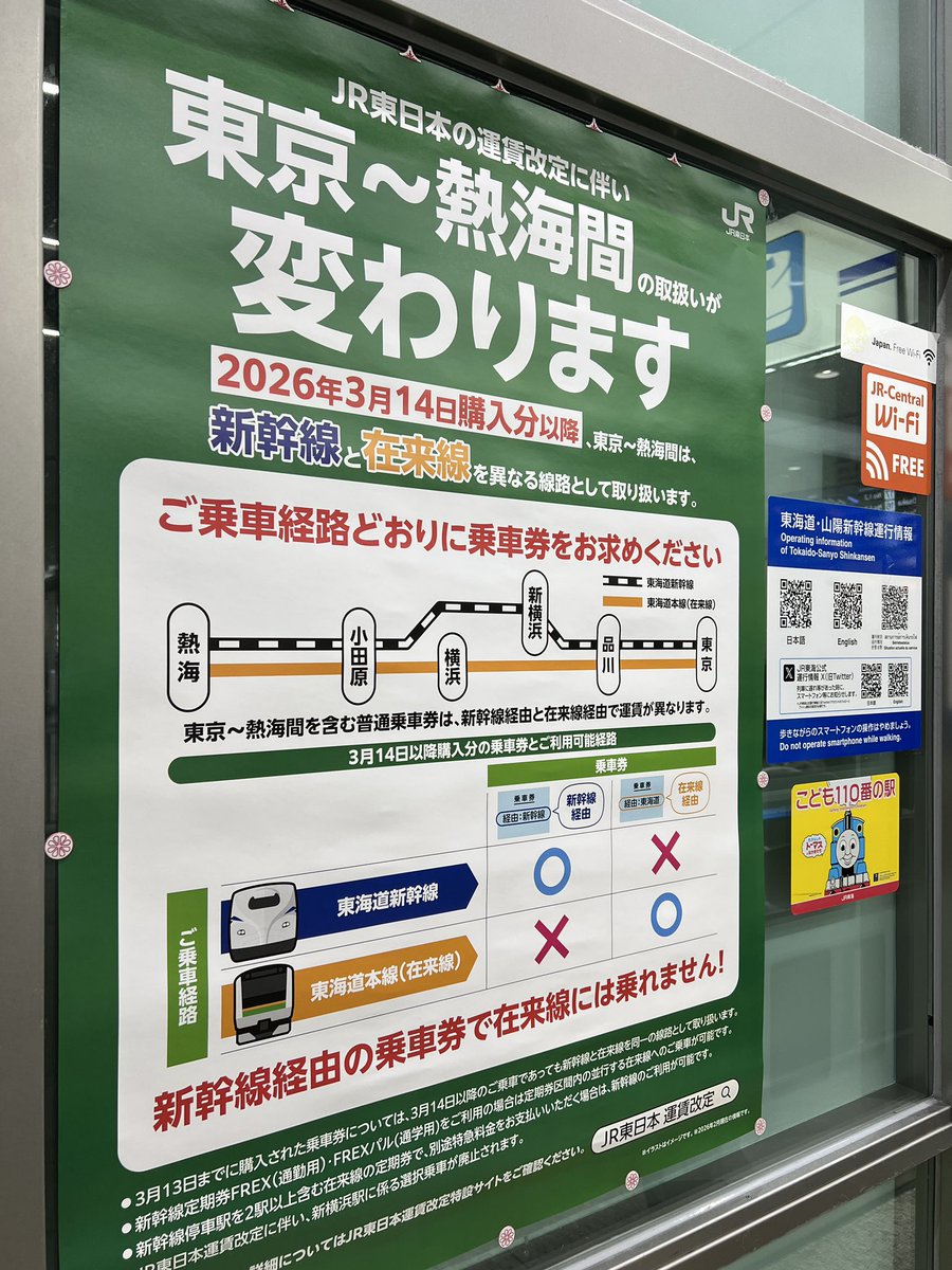 : 改制後,JR東日本部分的東海道本線在來線與東海道新幹線由原本的新在同一視規則,