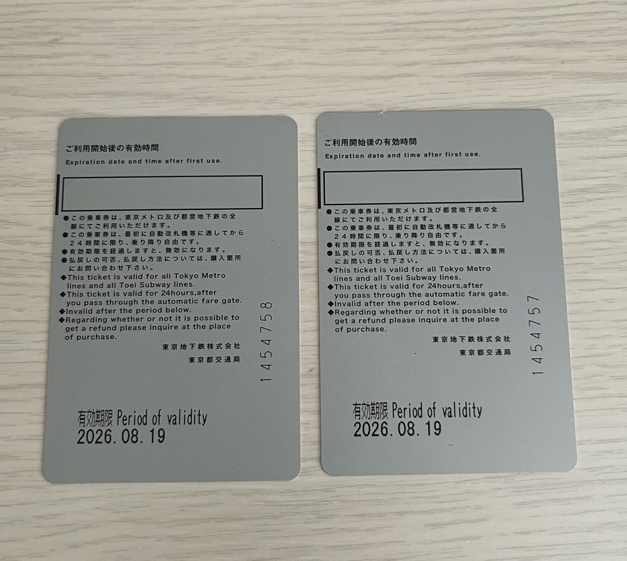 [讓售] 東京地鐵24小時 實體票2張