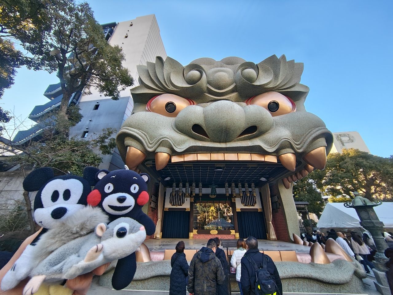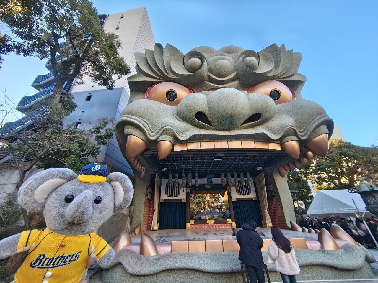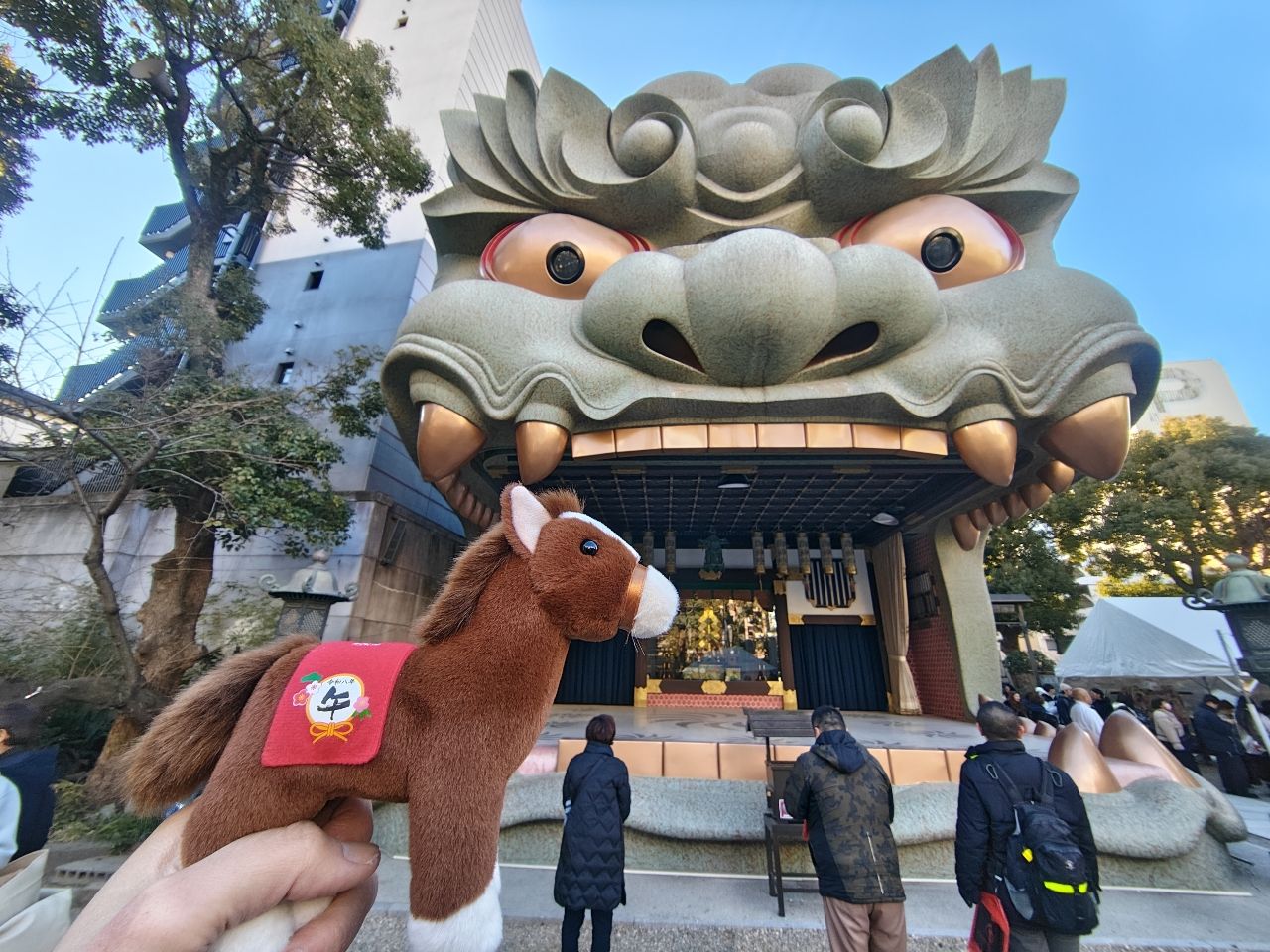 走到難波八坂神社拍獅子造型