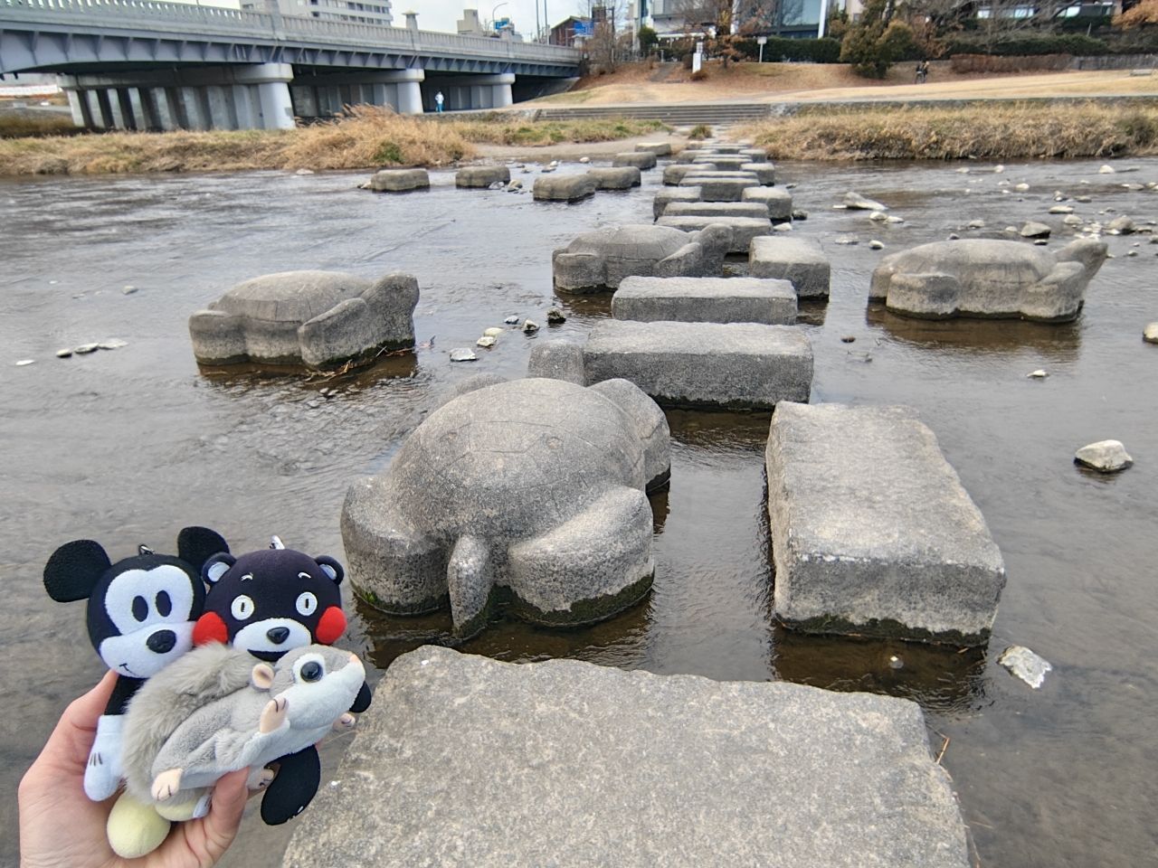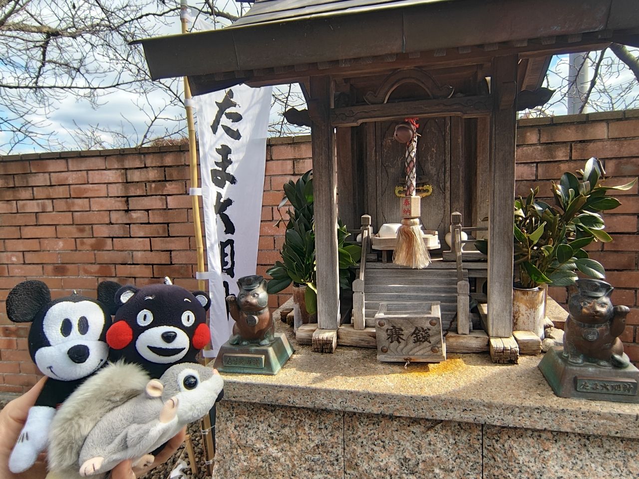 記者熊本熊、米奇、蝦夷鼯鼠、Eddy及小熊的駿馬在關西的連線報導