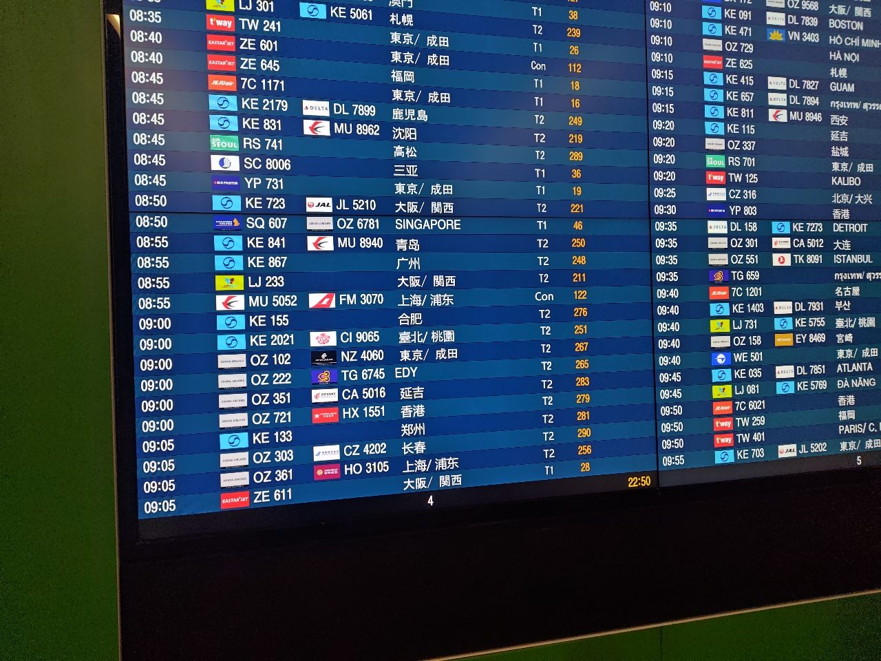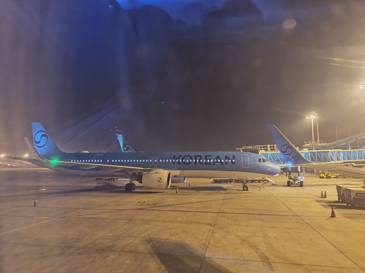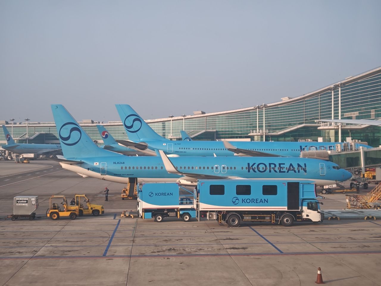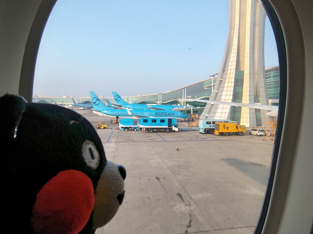 到仁川機場主場了,窗外都是藍色大韓航空的飛機