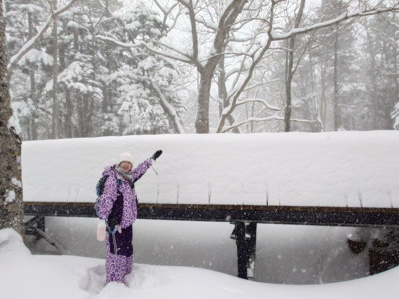展示積雪深度的導遊姊姊