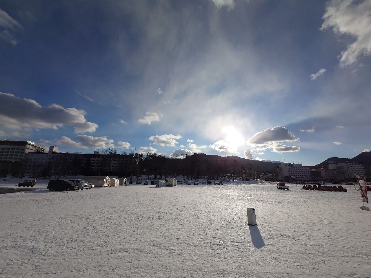 中午回到阿寒湖,此時湖面結冰已有各式冰面活動(冰上摩托車,釣漁...etc)
