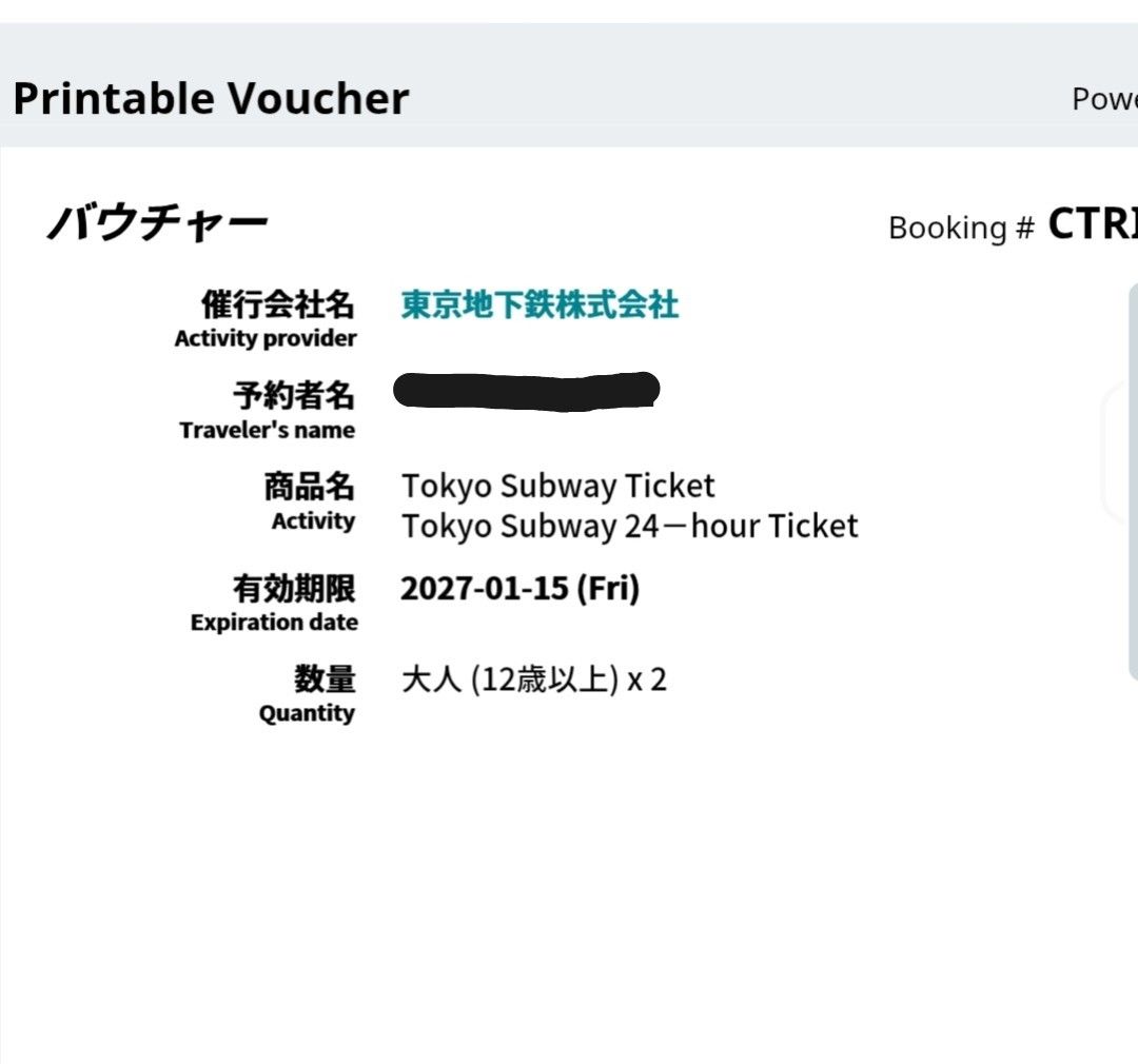 東京地鐵24小時券2張:322
