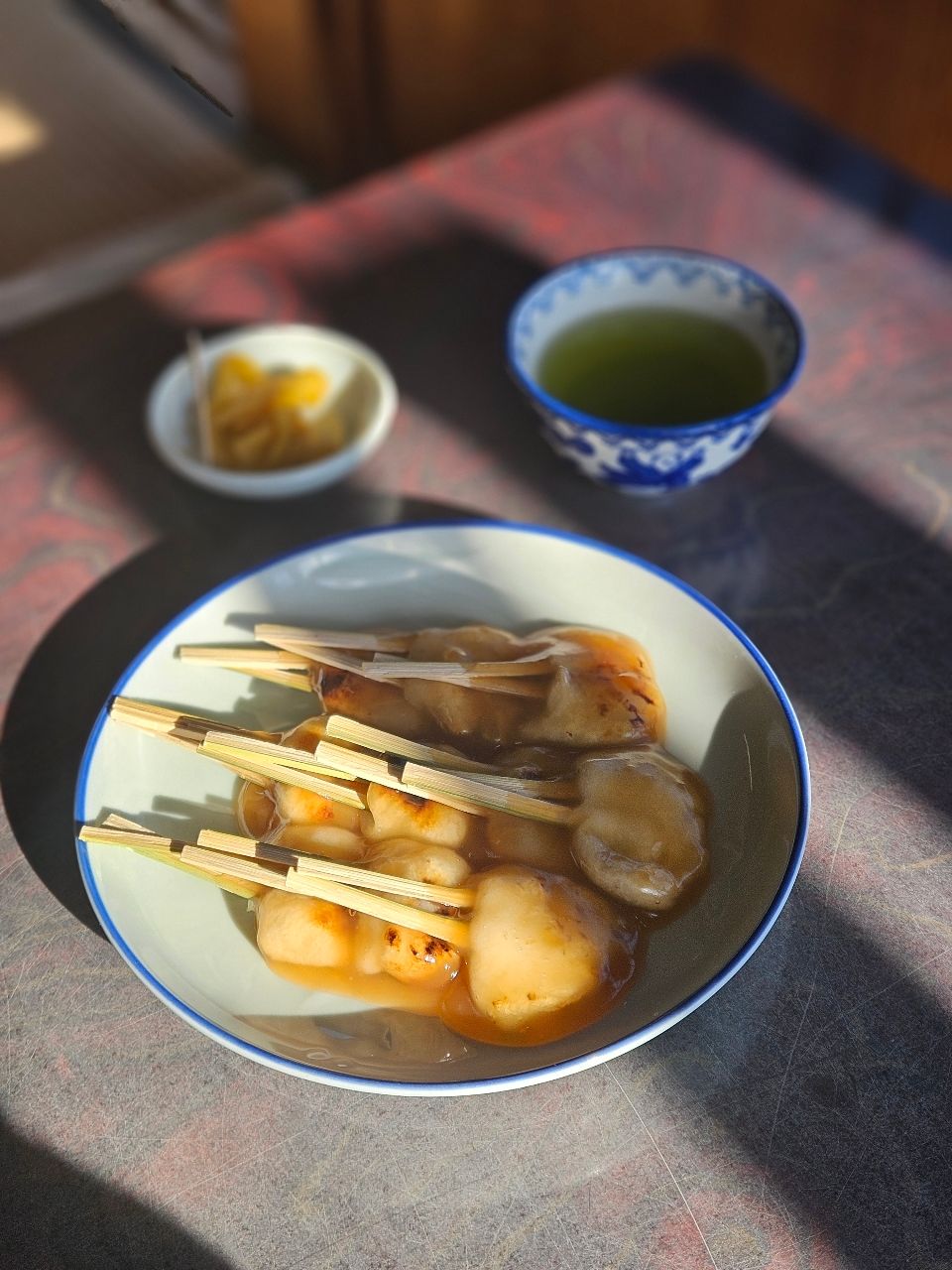 兩棒餅這名字太可愛了!因為麻糬插上兩根扁平竹籤,像武士腰間的兩把刀而得名。麻糬