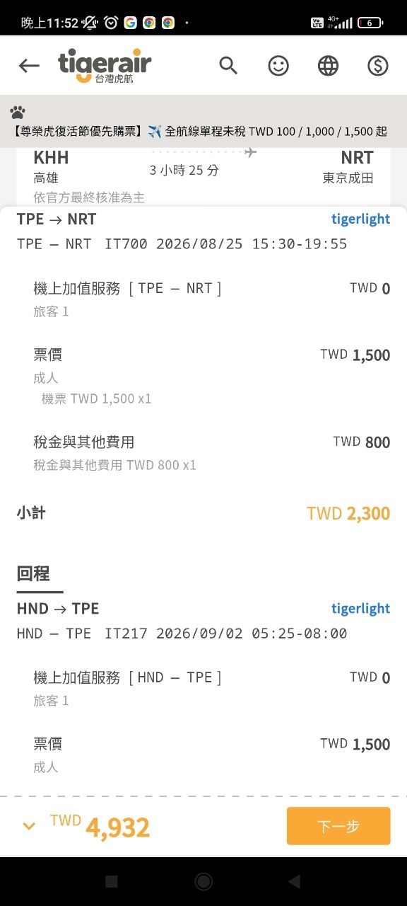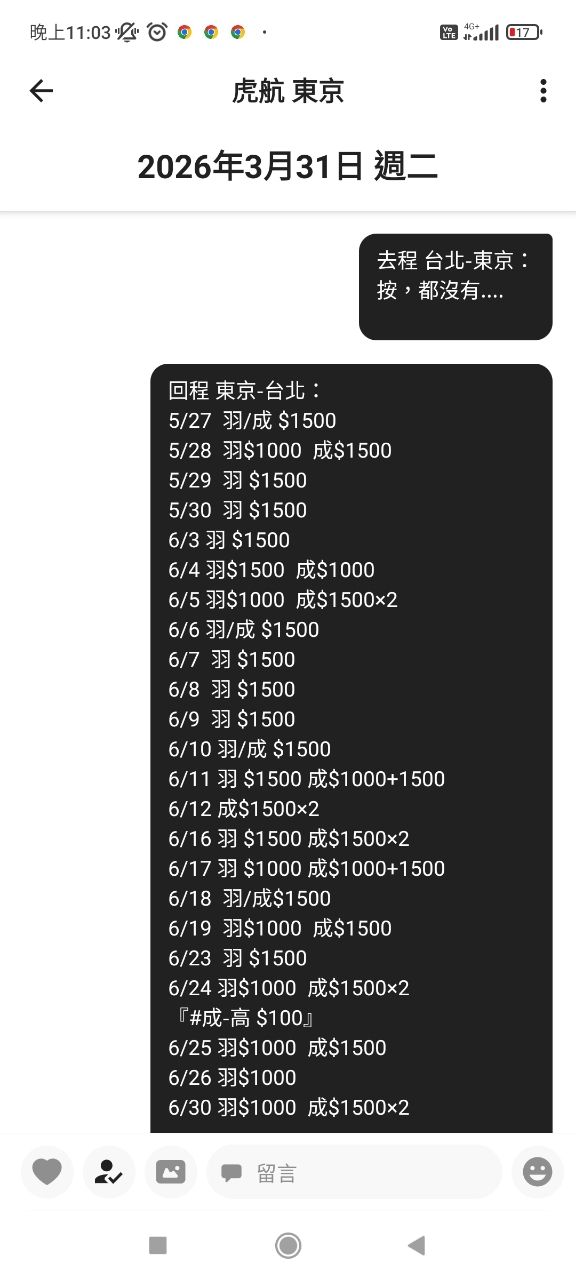 另外虎航正常情況,很多時候便宜票價的區間要至少一個禮拜以上,所以大家記得操作就
