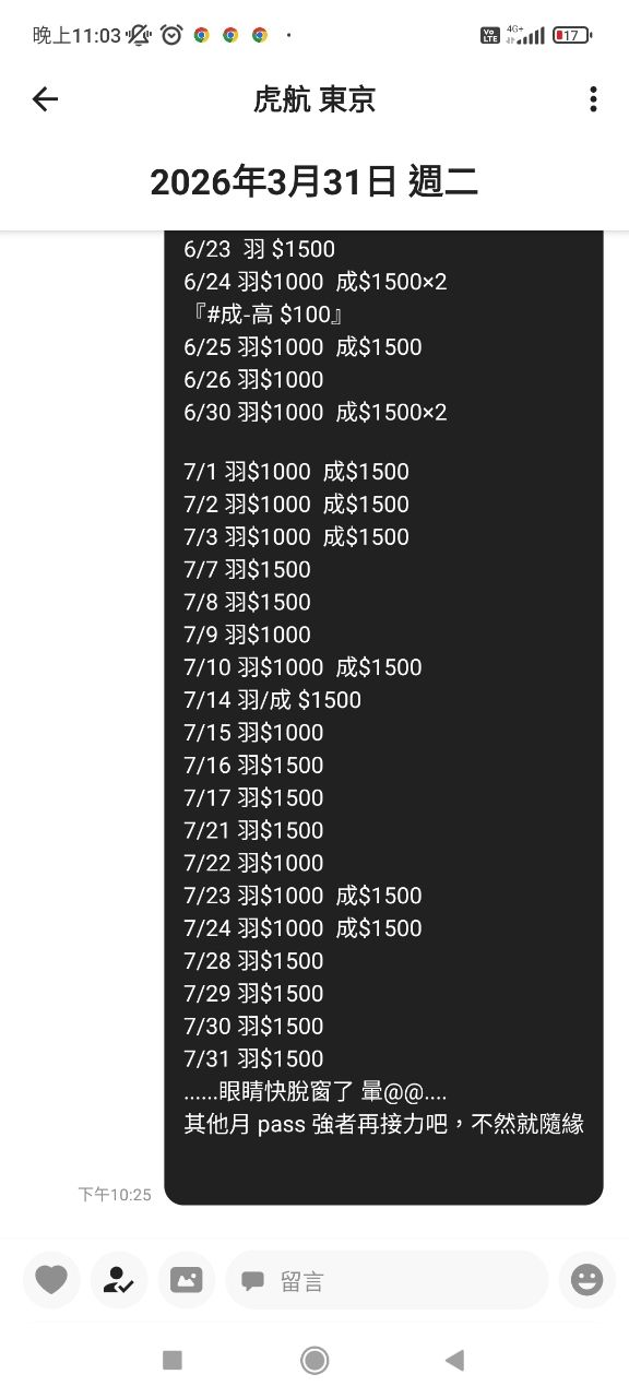 明天策略建議就是 今天先鎖定自己想要的旅遊檔期,先評估今日有促銷日期為參考