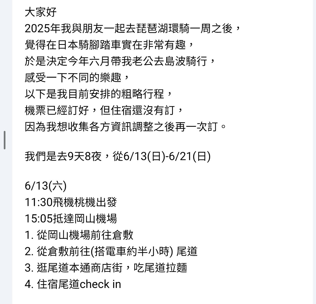 以下是我的行程