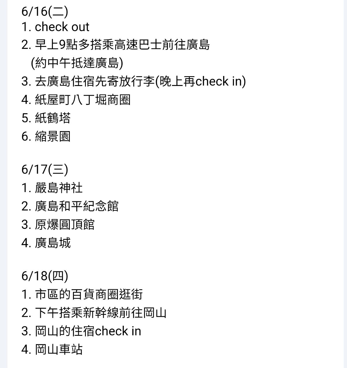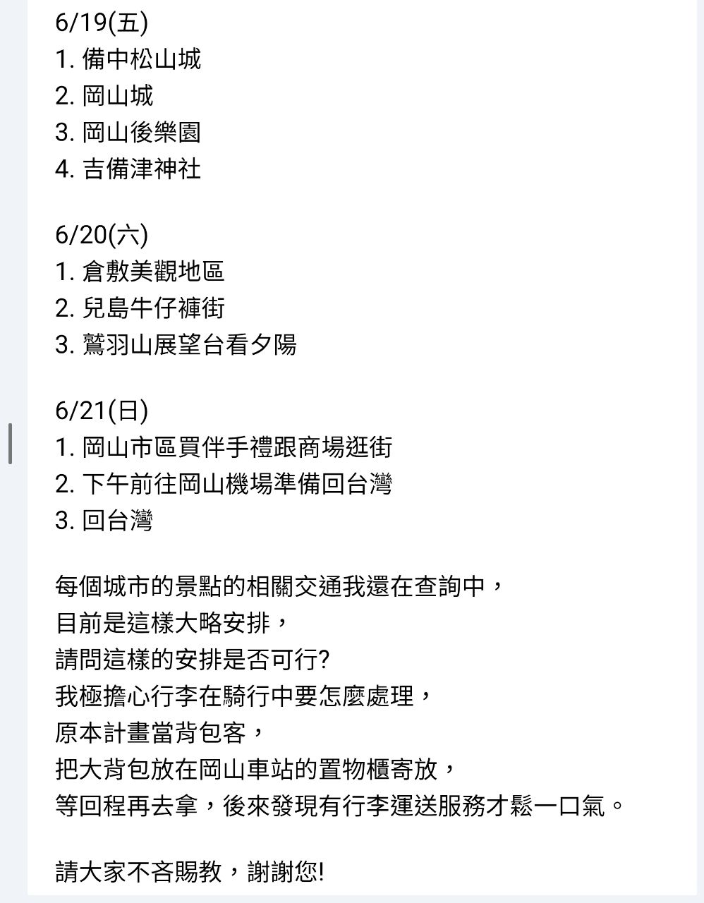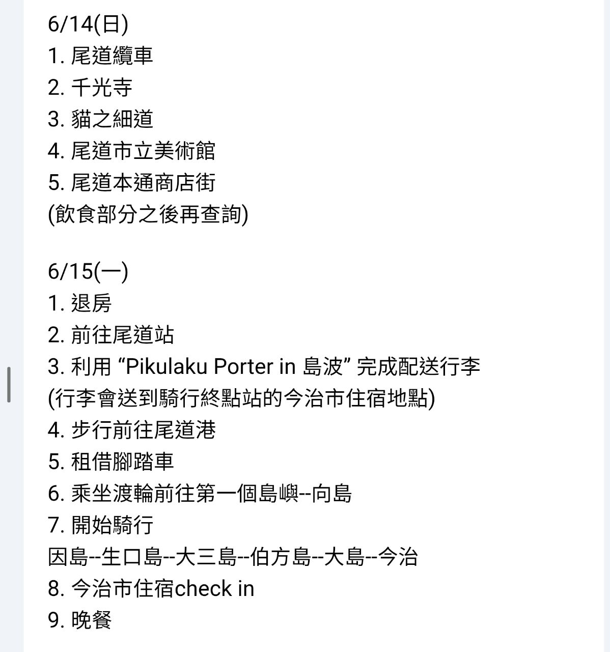 [問題] 岡山、尾道、島波、廣島行程請益