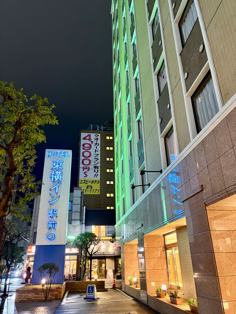 東橫inn博多口站前旅館的地理位置實在很優異,巷口有一間全家超商,斜對面就是我先
