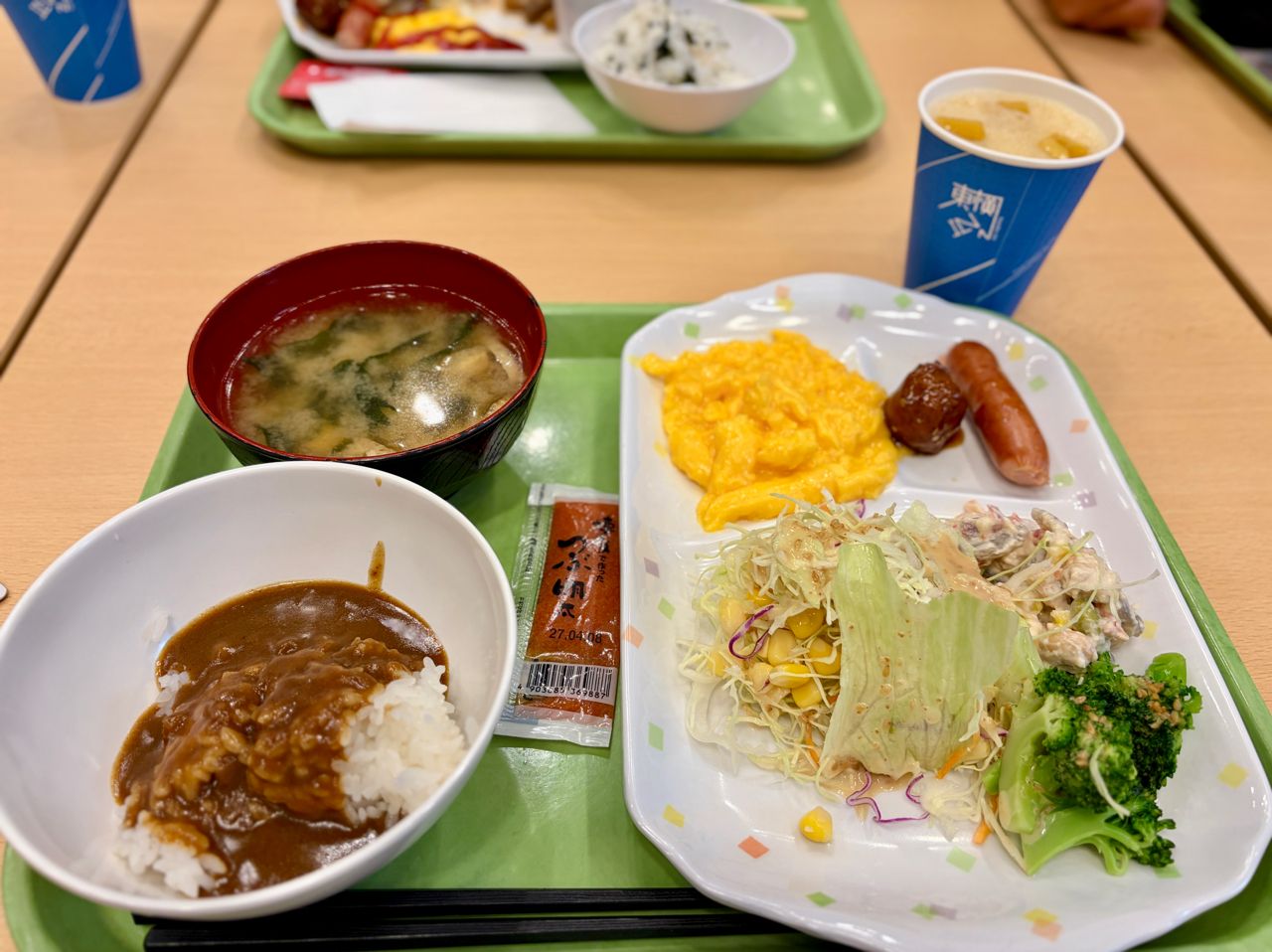 冷的醃漬物,甚至有咖哩飯、炒蛋、肉丸子等等熱食,雖然沒有博多站前祇園的明太子實
